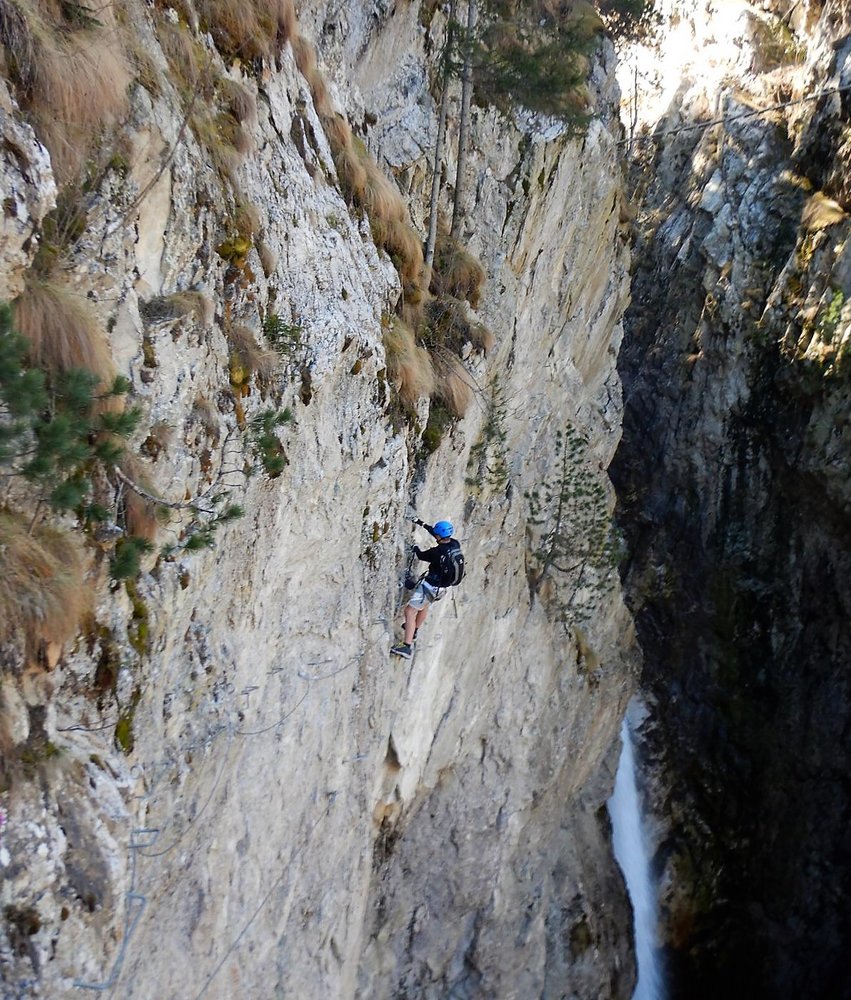 Perfekt gesicherter Fun-Klettersteig mit vielen Bügeln
