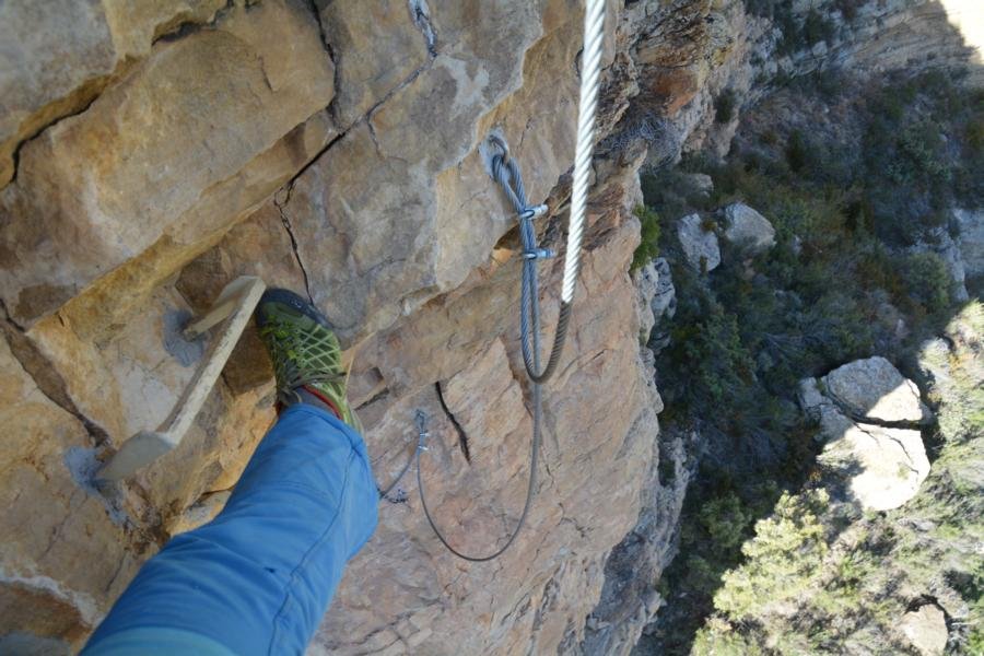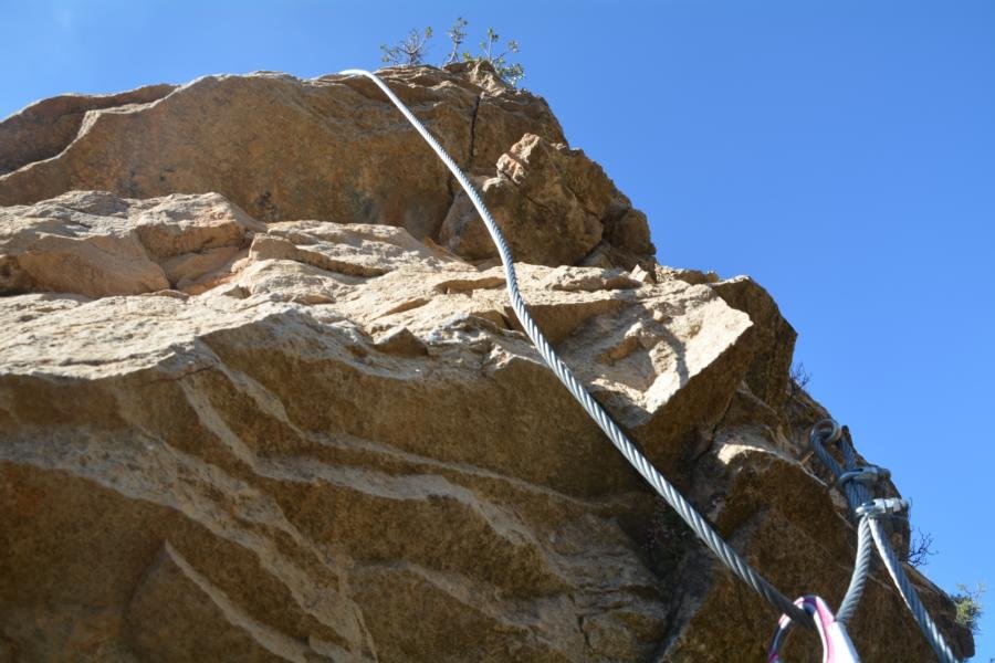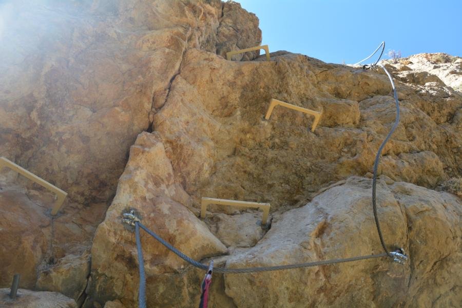 Der Klettersteig ist extrem schwer und aufgrund der Tatsache, dass er nicht durchgehend mit Stahlseilen versichert ist, sollte er nur von Klettersteigexperten begangen werden!