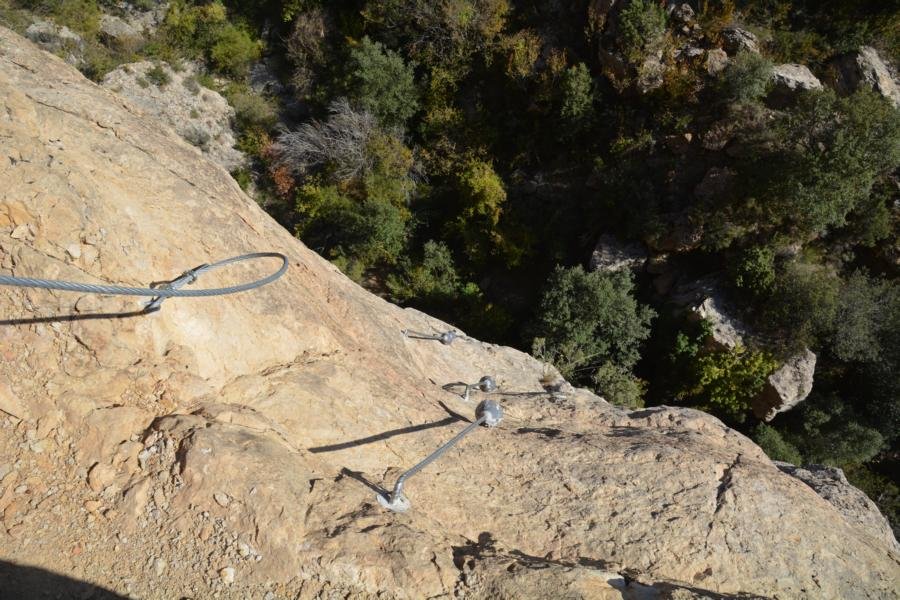Eine ultimative Herausforderung an die Psyche ist dieser Steig! Diese Felswand mit 3 Dächern erfordert viel Kraft, da teilweise an Stahlstiften ohne Möglichkeit zur Zwischensicherung geklettert wird - es gibt also recht hohe Sturzhöhen. Diese Ferrata gehört zu den schwersten Klettersteigen der Welt – Vorkenntnisse auf F oder E/F Steigen ist erforderlich. Im oberen Teil gibt es eine spezielle Attraktion: der Klettersteig verläuft teilweise ohne Seil–Versicherung an Pendulos, stattdessen gibt es vertikale Stahlstangen mit Puffern.