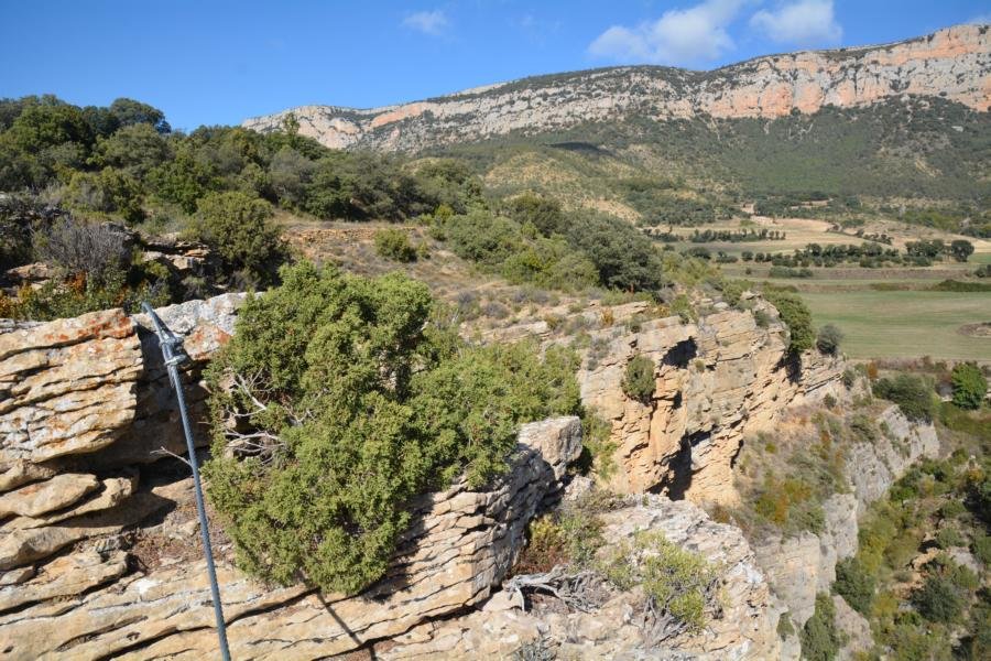 Alternativ kann man vom Parkplatz bei Corca zusteigen. Vom Parkplatz auf dem Weg "Cami de Mont-rebel" bis von diesem der Weg "Acces via ferrada" abzweigt. Zunächst auf dem "Acces via ferrada" weiter, bis dieser in eine Schlucht führt. In der Schlucht, teilweise weglos, weiter bis bis man wieder auf einen Weg kommt. Diesem zum Einstieg folgen.