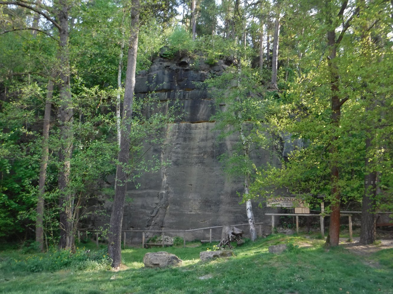 Die Route "Cesta Domů" dient als Abstiegsroute vom oberen Punkt mit einem Wandbuch. Im oberen Bereich gibt es die Möglichkeit, Kletterer im Steig zusätzlichem mit Seil Toprope zu sichern.