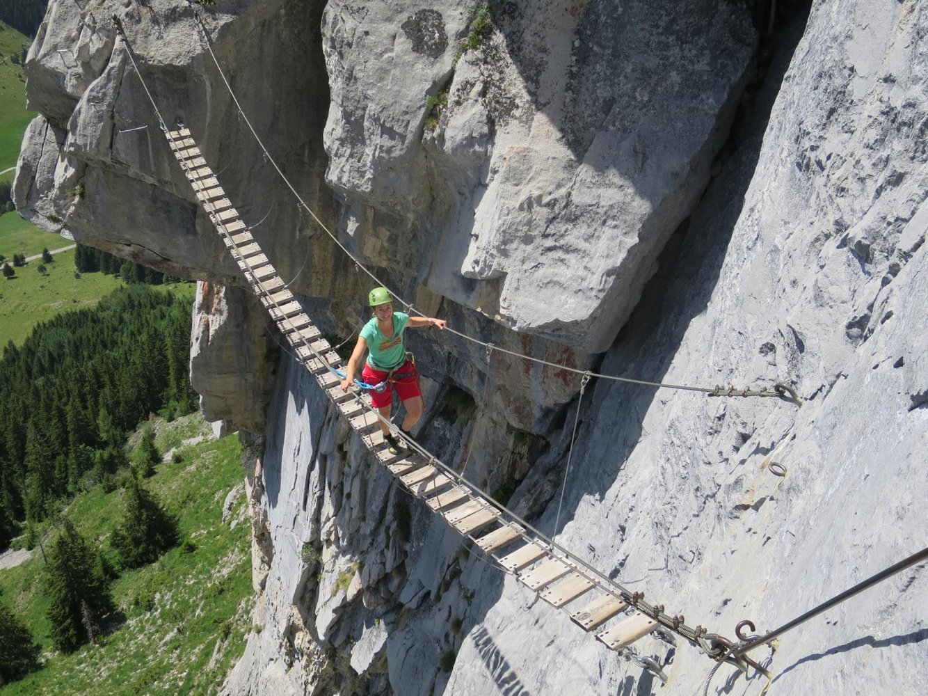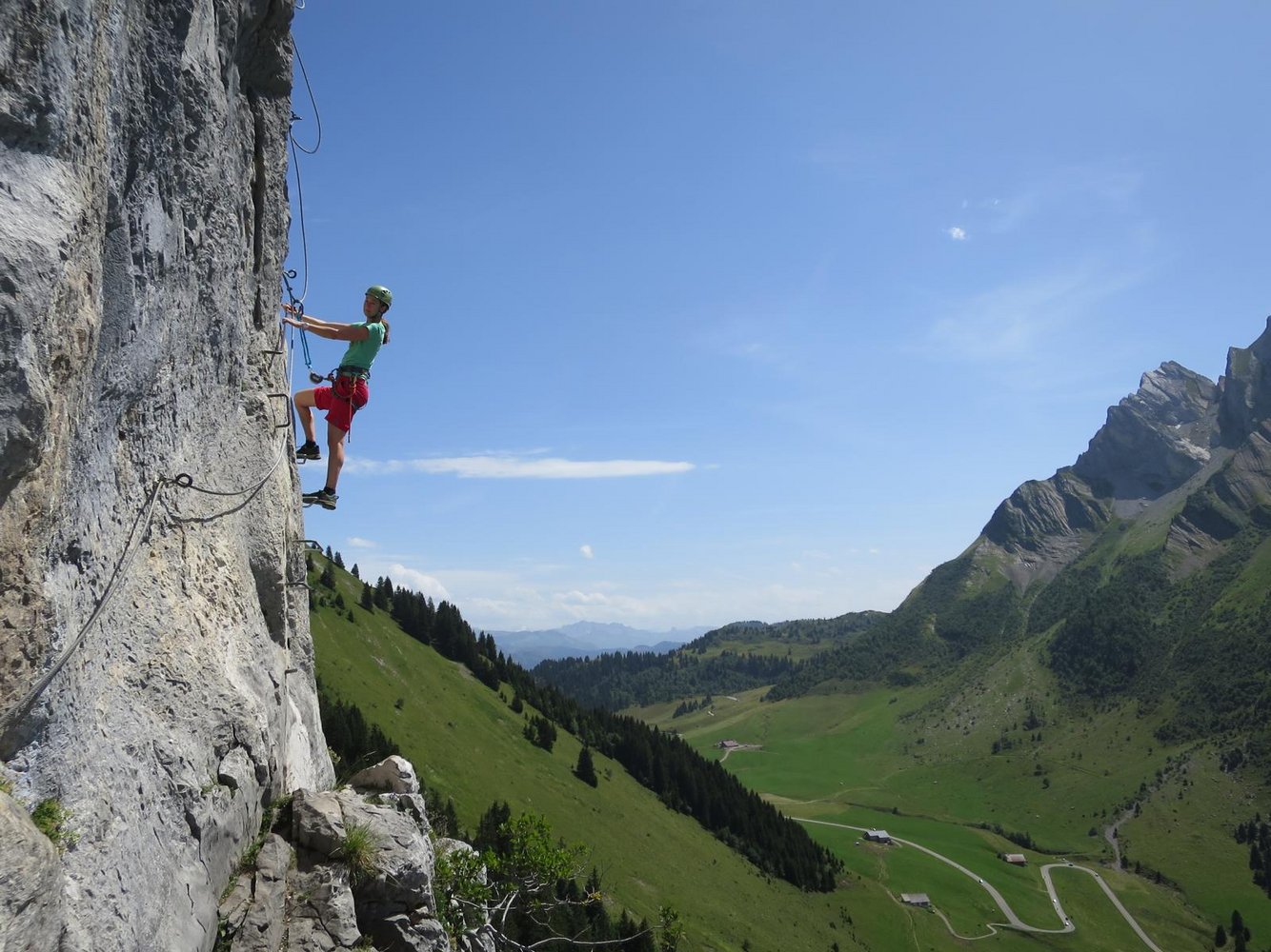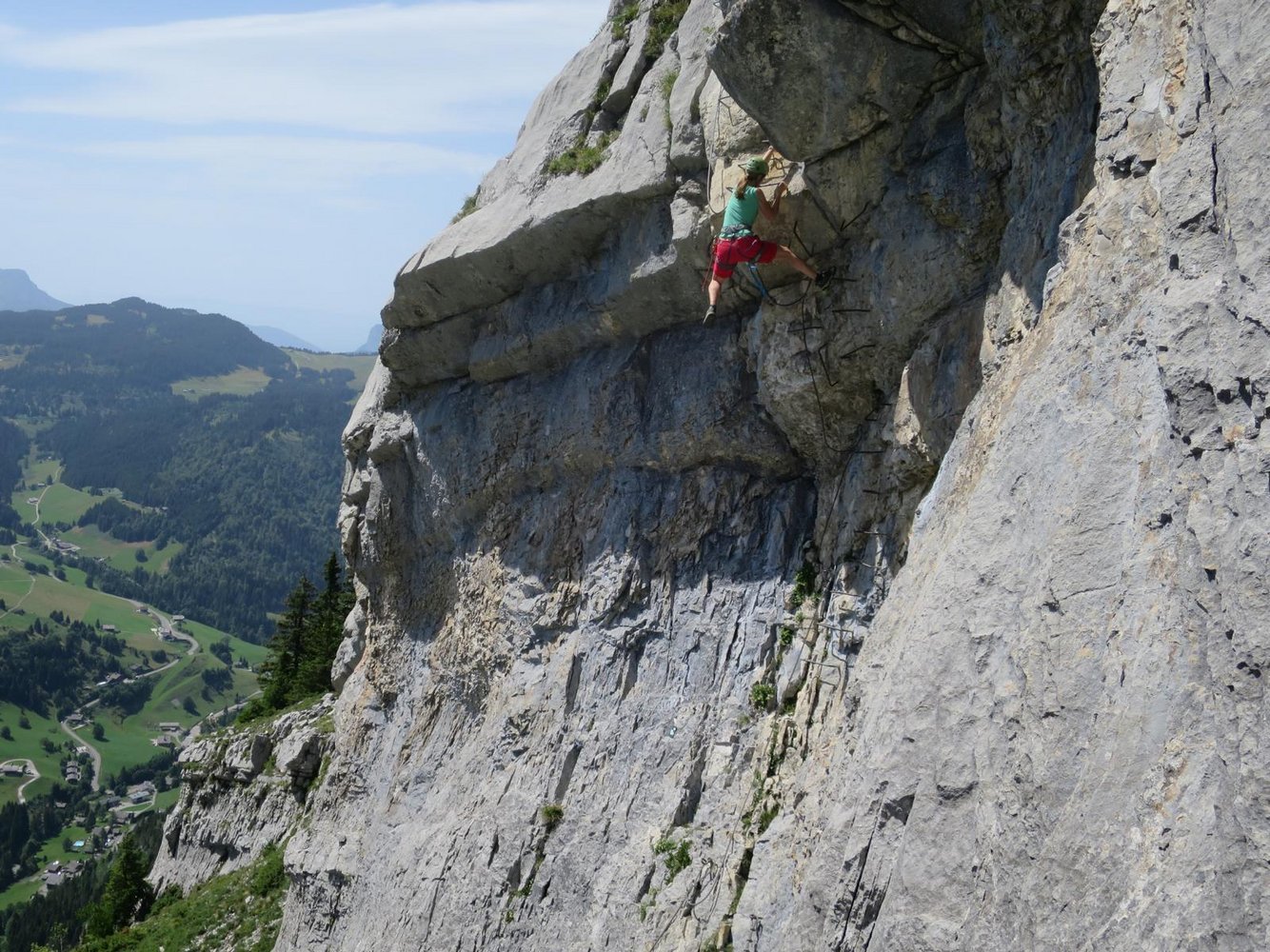 Schöne, nicht allzu schwierige und lange (700m) Ferrata oberhalb des Skiortes La Clusaz. Der Klettersteig quert den Rocher de Borderan leicht ansteigend, hat eine schöne Brücke und auch eine sehr schwere Ausstiegsvariante (D/E). Ohne diese halten sich die Schwierigkeiten, abgesehen von einer kurzen B/C Stelle bald nach dem Einstieg, aber in Grenzen. Generell ein lohnendes Klettersteigziel in Frankreich, das man gut mit den anderen beiden Klettersteigen bei Thones verbinden kann.