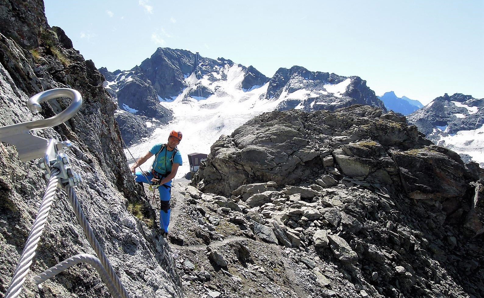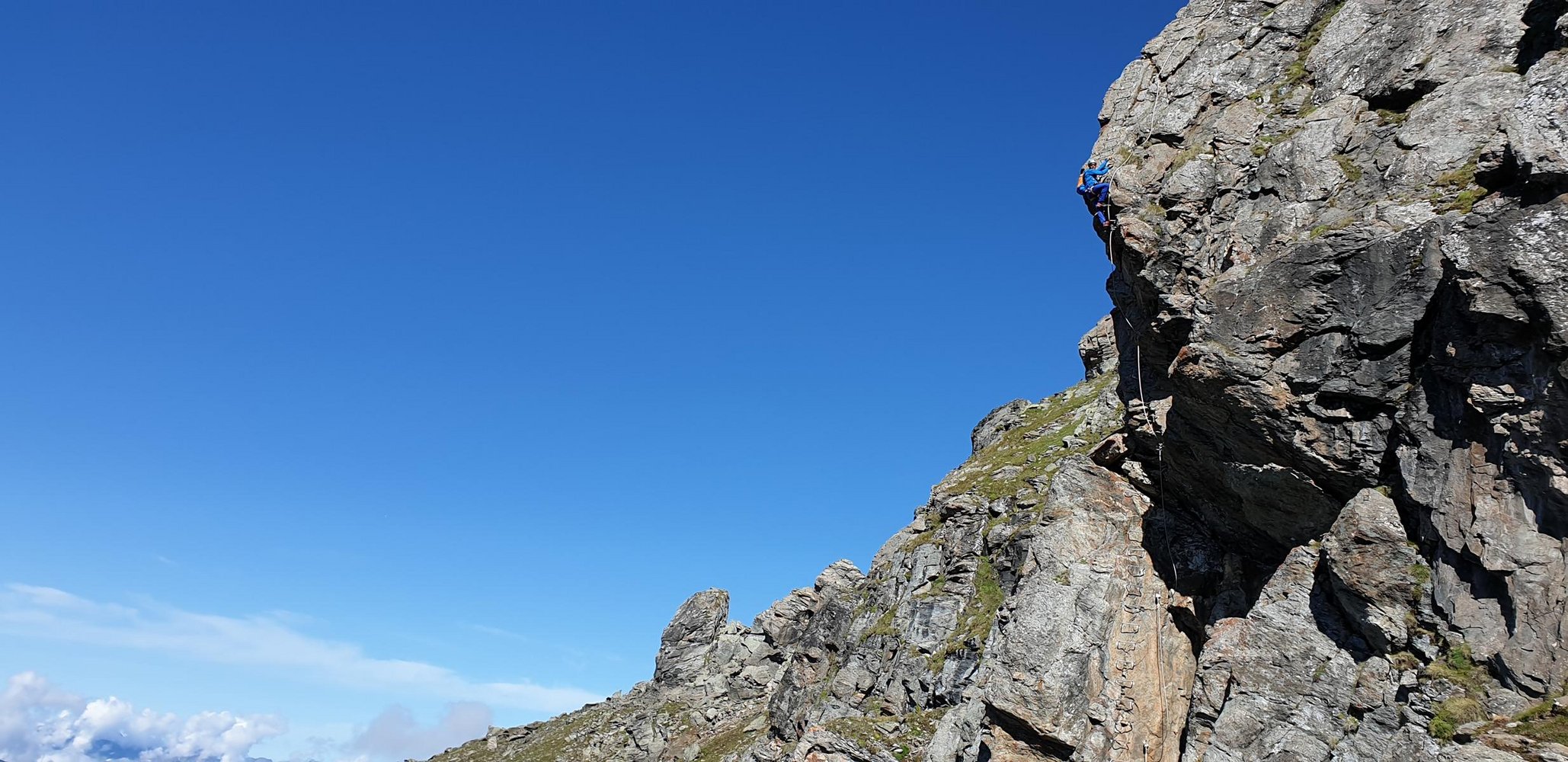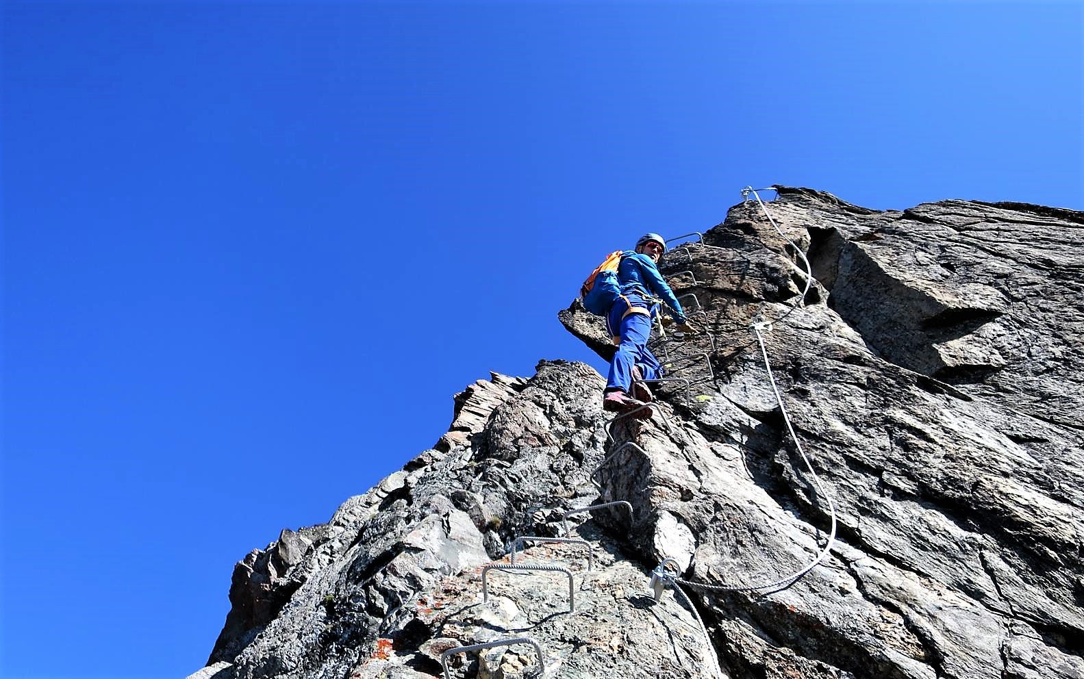 Der Steig selbst bietet auf seinen rund 340 Klettermetern sehr abwechslungsreiche Kletterrei und einen grandiosen Ausblick auf den Grand Combin und die Mont Blanc Gruppe.