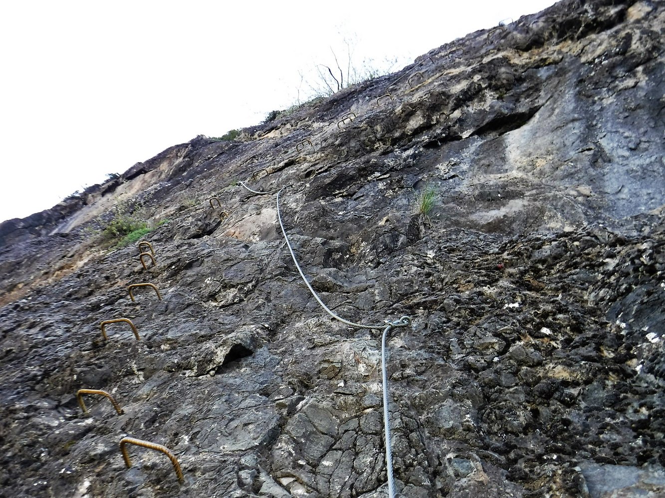 Kein typischer französischer Sportklettersteig mit viel Eisen im Fels. Sondern eine unspektakuläre Route, wo man viel Felskontakt für Hände und Füße hat. Nicht allzu schwer und mit Sicht ins Tal. Allerdings im unteren Abschnitt auch Sand und Bewuchs.