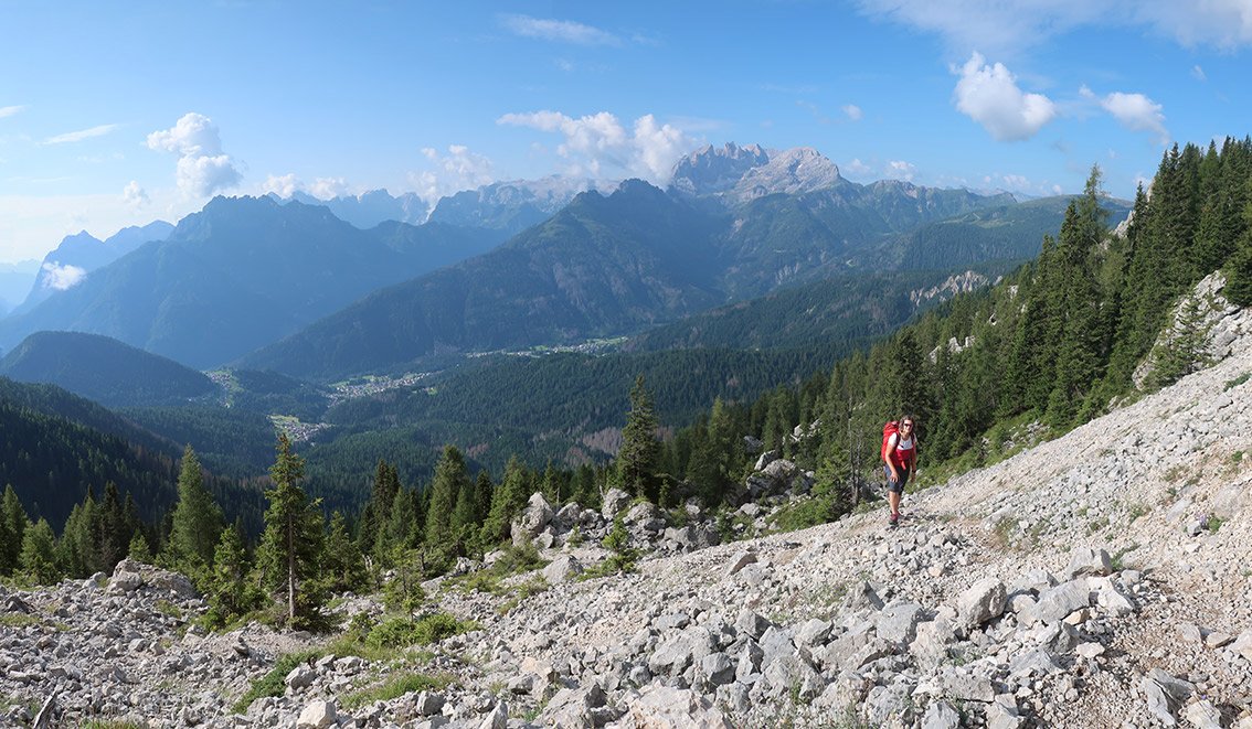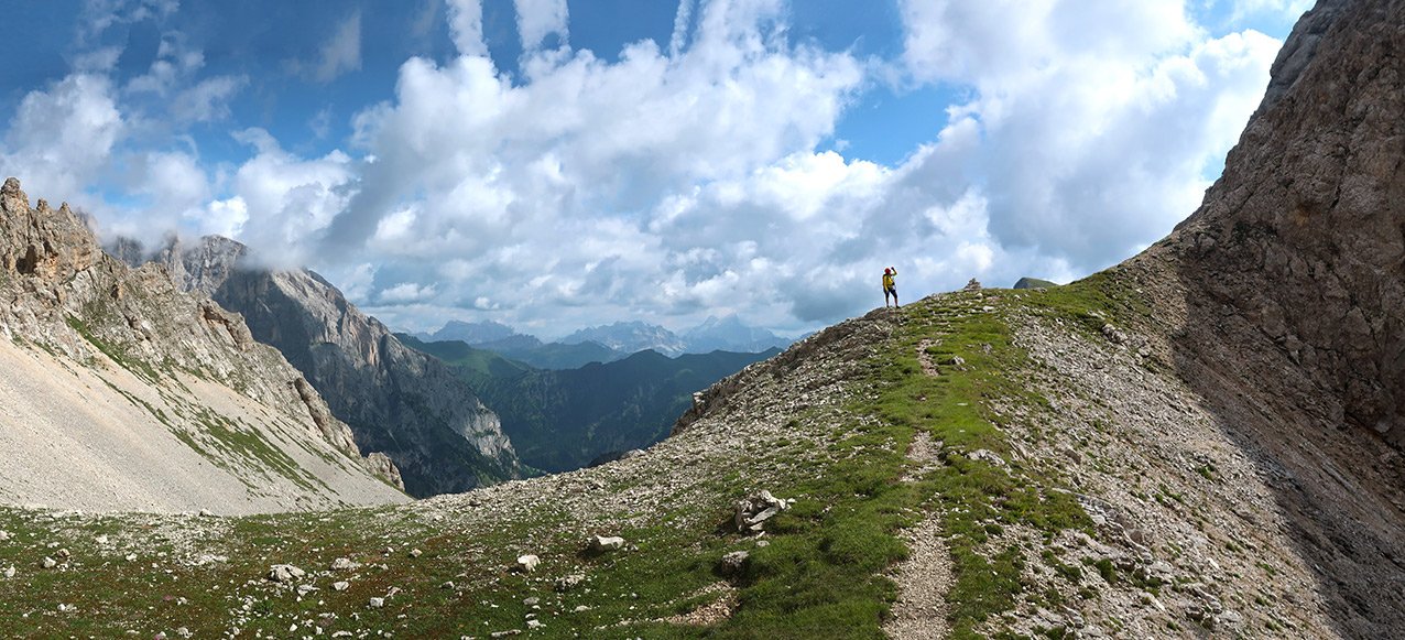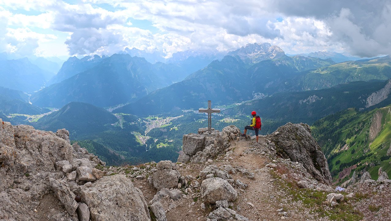 Kühn angelegte Ferrata Paolin Piccolin, die durch die Südabbrüche zum Gipfel der Cima d‘Auta gilt als Geheimtipp in den Dolomiten. Der Klettersteig wird zu Unrecht von Urlaubern nur selten besucht, steht aber bei den Einheimischen ganz hoch im Kurs. Die Ferrata hat viele recht luftige und steile Passagen und endet nach einem gewaltigen Plattenfinale auf einem fantastischen Aussichtsberg! Die mächtigen Südabbrüche der Marmolada und die berühmten Wände der Civetta sind nur einige der Blickfänge bei der Gipfelrundumsicht. Nach dem landschaftlich anregenden Abstieg wartet eine Einkehr in der Baita dei Cacciatori.