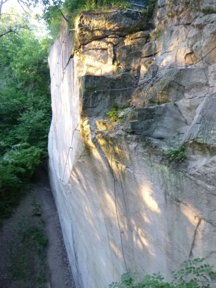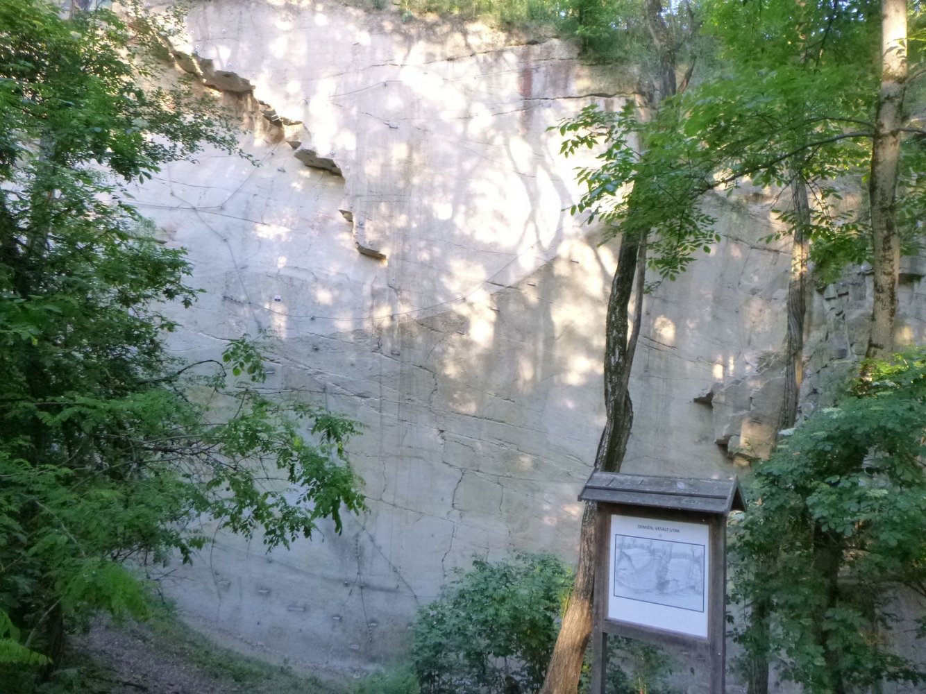 Im ehemaligen Bányabérc-Steinbruch von Demjén hat man seit 2021 durch den glatten westseitigen Rhyolith-Tuff insgesamt 11 Klettersteigrouten eingerichtet, welche durchgängig mit 14 mm dicken Stahlseilen gesichert sind. Insgesamt mit einer Länge von 375 m. Weil damals der Steinabbau nicht durch Sprengen erfolgte, sondern durch Spalten und Ausbrechen, besteht heute diese selten vorfindende glatte, risslose Felsstruktur der 33 m hohen Wände, die sogar etwas konkav gekrümmt sind und somit überhängen, was die dadurch die direkt nach oben führenden Routen zu den extremsten macht, die es in der „KS-Welt“ gibt. Dieser KS-Garten gehört darum nicht unberechtigt zu den oft frequentierten Orten. Nur in den traversierenden, oder einfacheren Routen gibt es Trittbügel am senkrechten Fels. Ansonsten sind Kletterschuhe das richtige Schuhwerk dort.