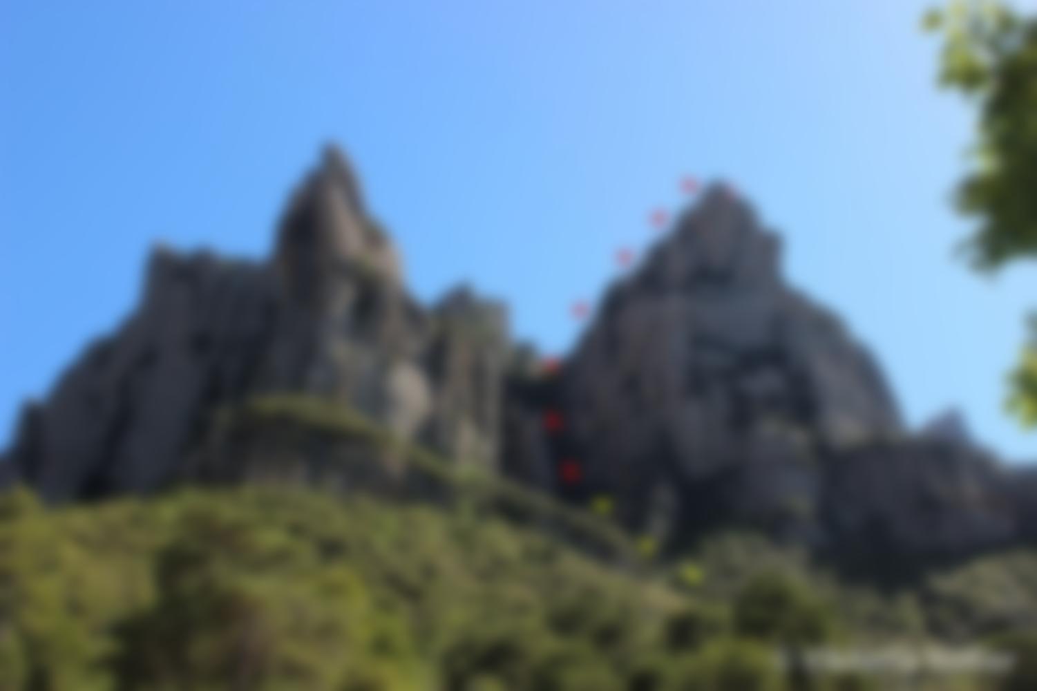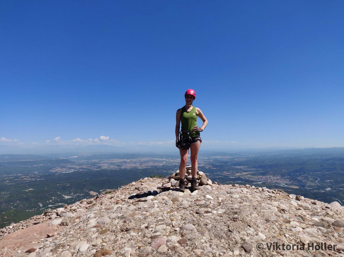 Die Ferrata in der Nähe Barcelonas führt auf den Sant Jeroni, der höchste Gipfel der Serra Montserrat. Die markanten Felsformationen der Serra Montserrat sind einzigartig. Auf dem Gebirge mit dichter Vegetation ragen gigantische, abgerundete Felstürme und steile Felswände empor. Griffiger Fels und angenehme Trittbügel machen die Route zu einem Genussklettersteig.