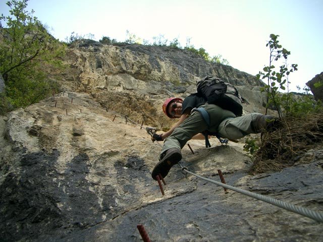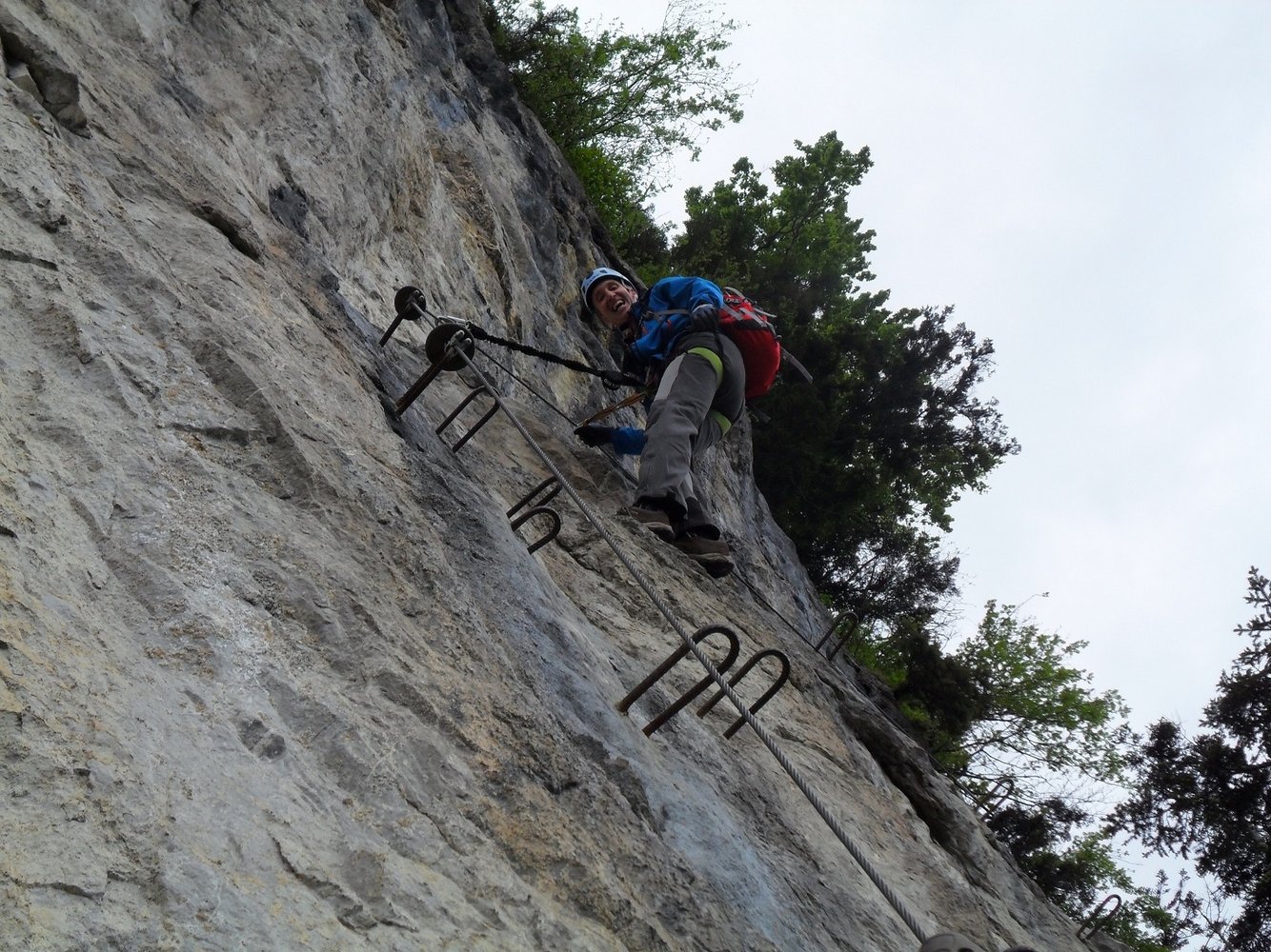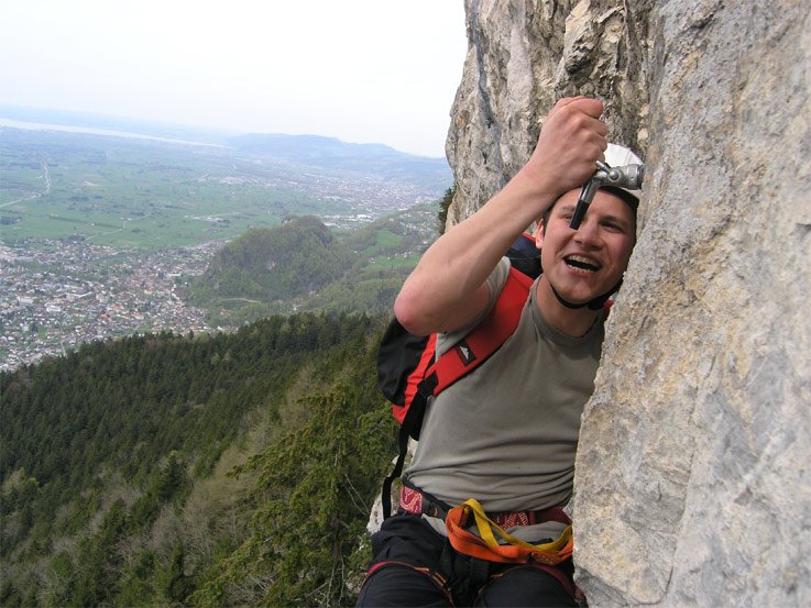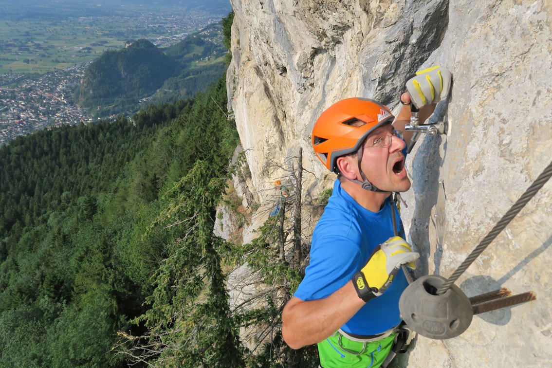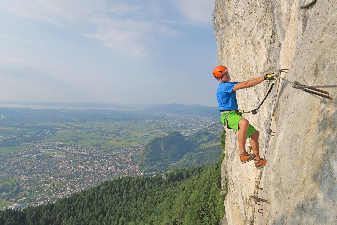Sportklettersteig der Extraklasse für Feinschmecker. Sehr luftig, sehr steil, sehr schwierig und sehr gut abgesichert - die Via Kessi hoch über dem Rheintal bietet ein vertikales Abenteuer der Extraklasse! Selten leichter als C/D, daher verlangt der sehr ausgesetzte Eisenweg sehr viel Kraft und Geschicklichkeit von den Begehern. Man kommt, trotz der geringen Steighöhe, wegen der vielen Überhänge ganz schön ins Schnaufen. Belohnt wird man mit einem grandiosen Ausblick ins Rheintal, der bei etwas Wetterglück bis weit über den Bodensee hinaus reicht.