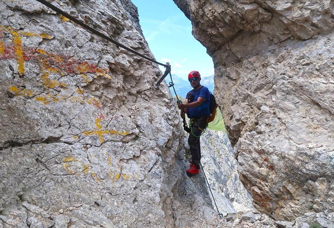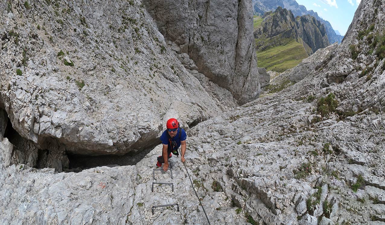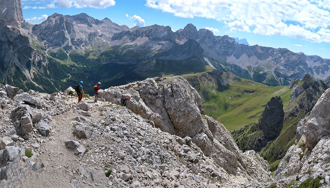 Wie beim Aufstieg auf dem Klettersteig absteigen und zurück zur Forcia Neigra (2509 m). Dort entweder auf dem Zustiegsweg ins Tal oder in Richtung Rif. Passo San Nicolo weiter und dann rechts auf dem "Sentiero attrezzato Lino Pederiva" (kurz A) zurück zum Skigebiet.