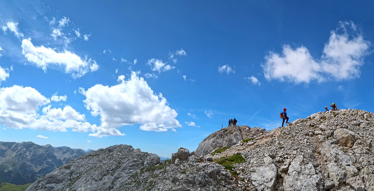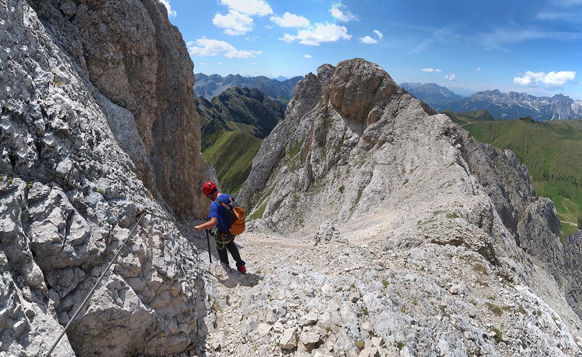 Komplette Klettersteigausrüstung und - ganz wichtig - einen Helm!