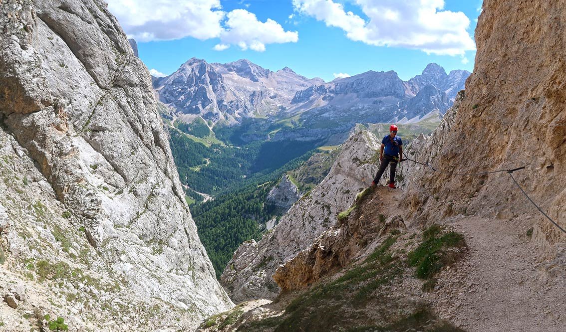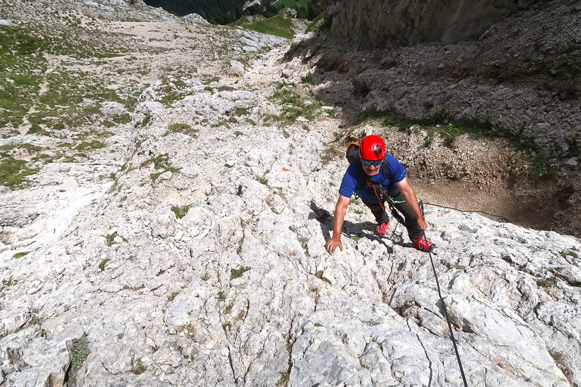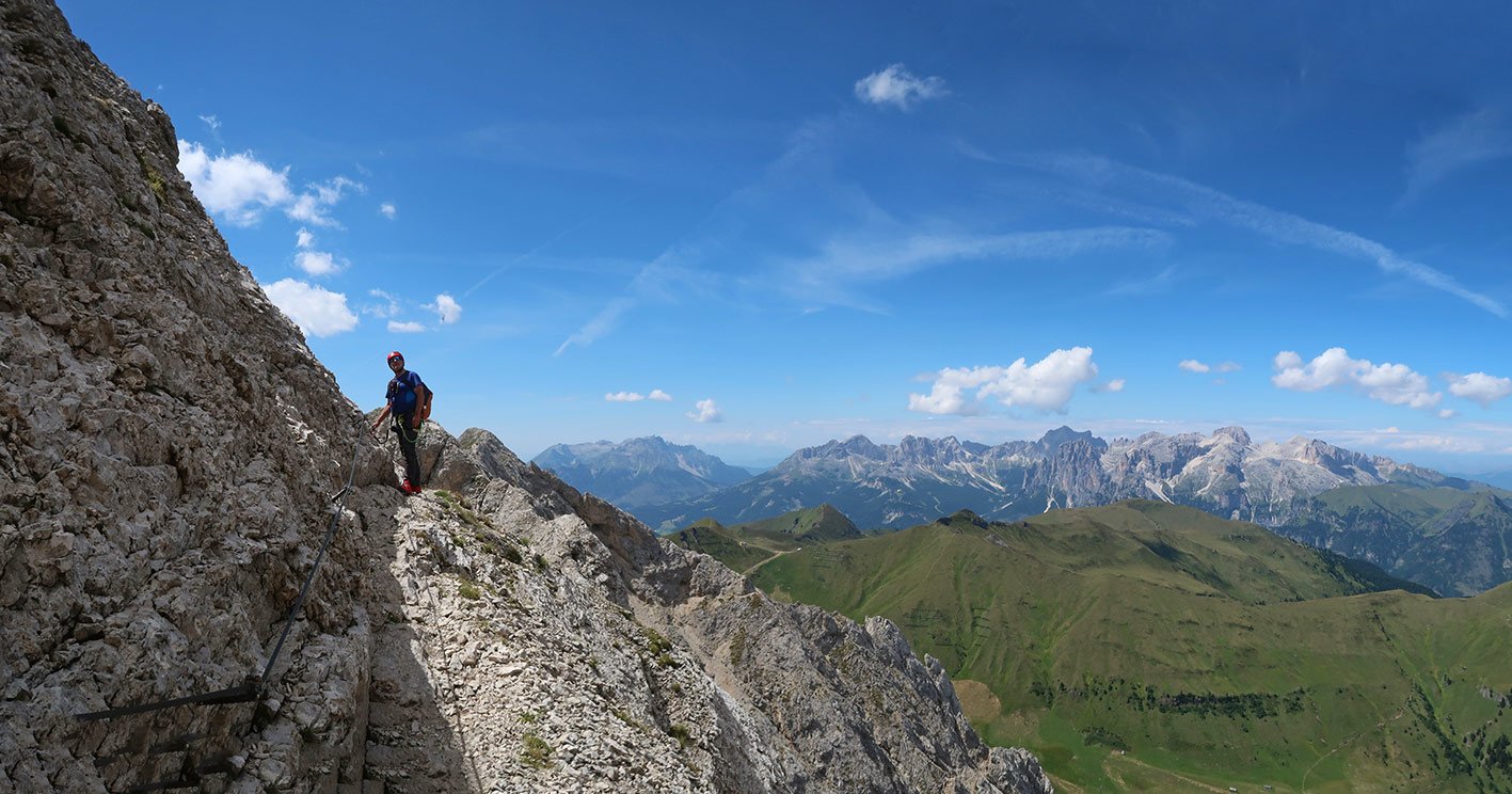 Die Via Normale - also der Normalweg auf den Colac ist der Abstiegsweg des Finanzieri Klettersteiges, diesen kann man aber auch als eigenständige Gipfeltour machen. Der Anstieg verläuft primär in Rinnen, welche dem Steinschlag ausgesetzt sind, der versicherte Abschnitt ist aber leichter und kürzer als die lange Ferrata Finanzieri auf der Nordwestseite des Berges. Der Normalweg ist auch gut mit der Kammwanderung Lino Pederiva (kurze Passagen A) zu verbinden (siehe Track). Vom Gipfel des Colac hat man einer perfekten Dolomiten-Rundumblick!