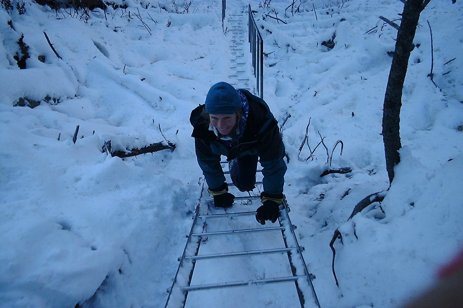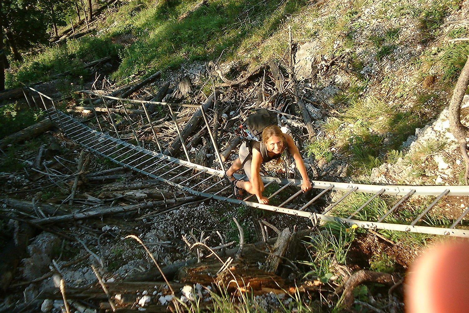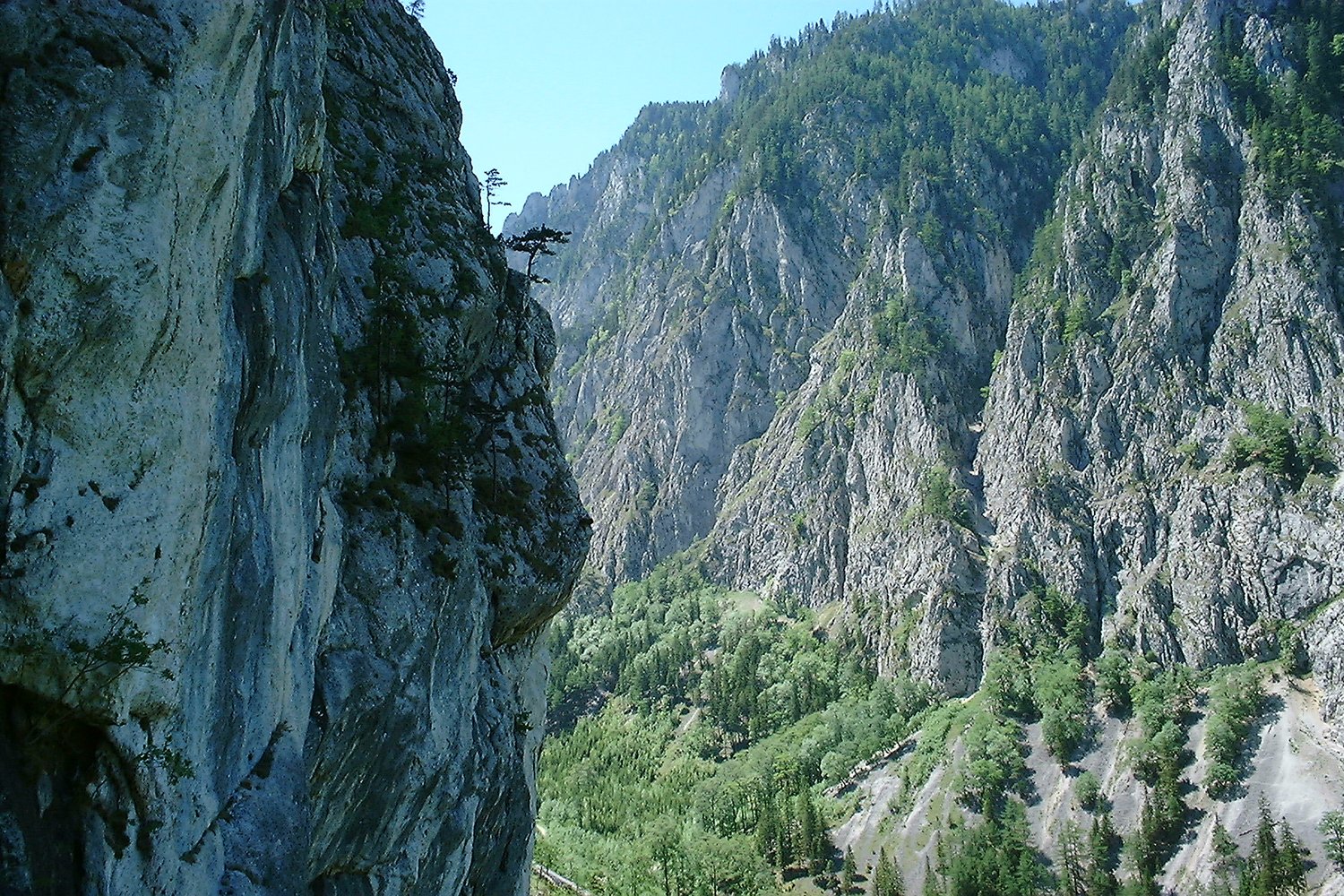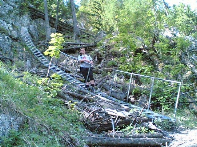 Mehr ein Wanderweg als ein Klettersteig. Dieser traditionelle Aufstieg auf das Hochplateau der Rax. bietet vor allem im unteren Teil einige Leitern und Versicherungen. Nach dem “Kletterstieg“ folgt der blau/weiss markierte Weg dem Kamm und bietet tolle Tiefblicke ins Gr. Höllental. Für Kinder und Anfänger durchaus geeignet, bei Nässe ist jedoch große Vorsicht geboten. Wird auch oft als Abstieg gemacht. Verschiedene Rundtouren möglich. So kann man in Verbindung mit dem AV-Steig oder Teufelsbadstubensteig eine schöne Runde durchs Gr. Höllental machen.