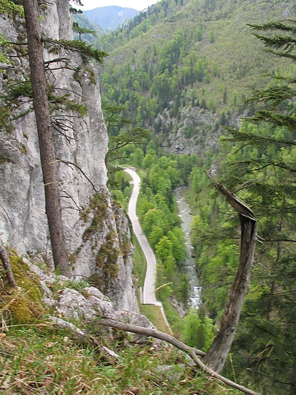 Vom Parkplatz beim Weichtalhaus auf der Höllental Bundesstraße kurz weiter Richtung Schwarzau im Geb. und gleich vor der Lawinengalerie links abzweigen (Schilder).