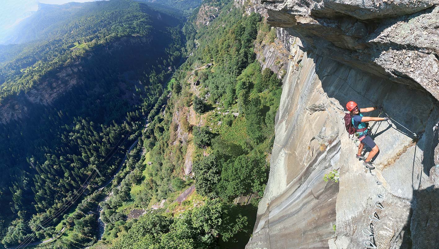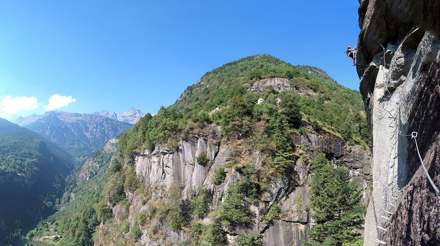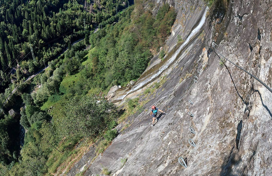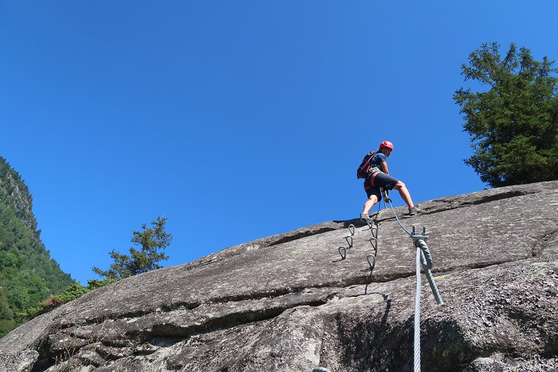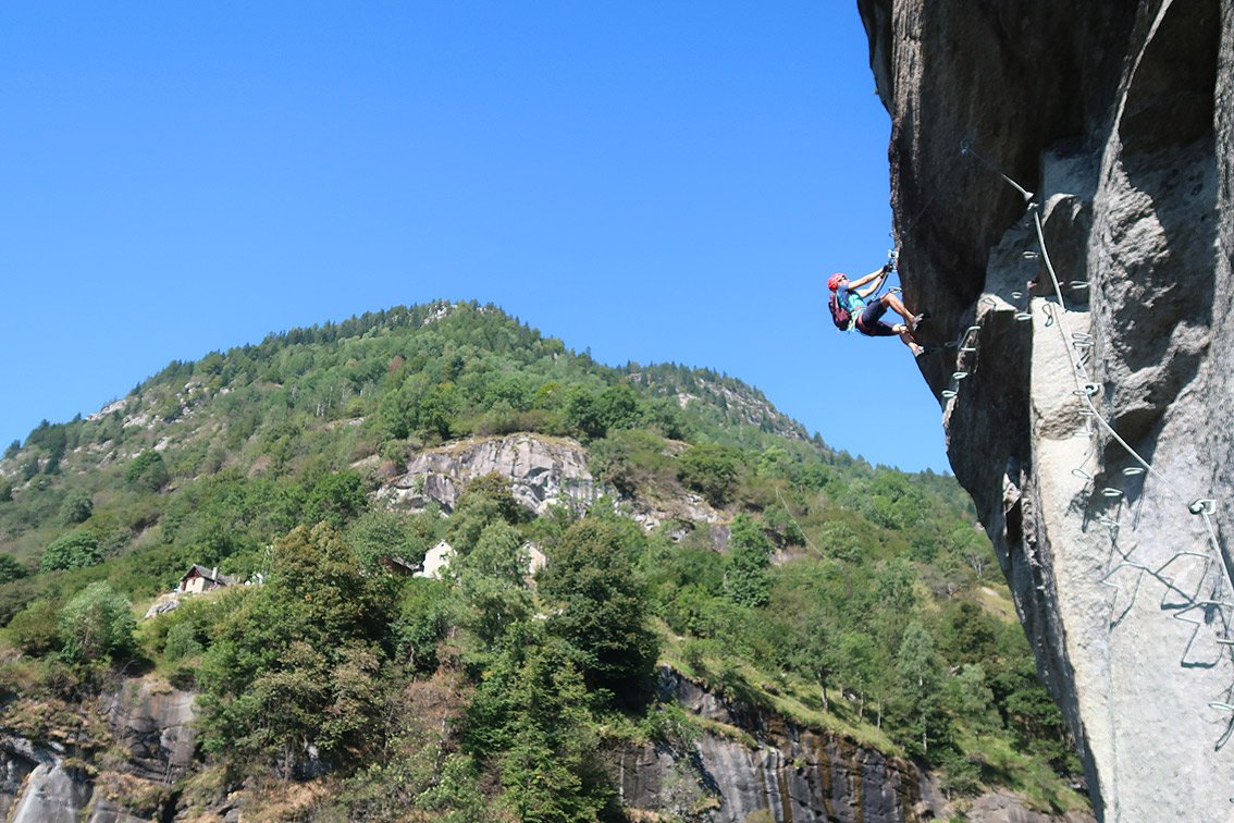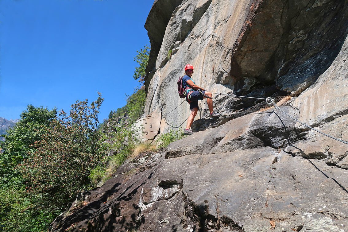Der Walserfall Klettersteig hat einfach Klasse - kaum eine andere Ferrata hat im Gesamtpaket so viel zu bieten wie der Anstieg entlang des Agaro-Wasserfalls unterhalb des gleichnamigen Stausees. Die Ferrata ansich beginnt human, leichte Plattenaufschwünge wechseln mit Gehgelände, ab der Mitte wird die Sache dann steiler und am Ende dann sogar noch super ausgesetzt und nichts für ganz schwache Nerven. Beim Ausstieg steht man auf einem riesengroßen flachen Granit-Teller und kann den Ausblick auf die malerische Umgebung genießen. Beim Abstieg geht man dann im Zickzack auf schmalem Pfad an der Felswand wieder runter und kommt an zahlreichen alten unbewohnten Steinhäusern vorbei, man taucht so etwas in die ältere Geschichte des Walserlandes ein. Der Abstecher ins Piemont lohnt sich auf jeden Fall, man wird mit einer gewaltigen Ferrata in toller Landschaft belohnt.