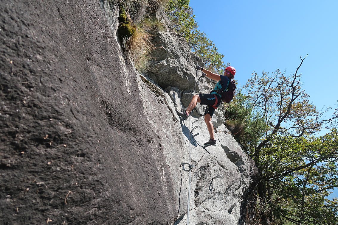 Einige Passagen C/D, die an der Muro del nano ist noch dazu extrem ausgesetzt, ein paar Mal C, meist aber um B. Achtung: Man sollte aber schon einen guten C/D-Level haben, um an diesem langen Steig solide durchzukommen (für Einsteiger und nur C-Klettersteiggeher nicht geeignet!).