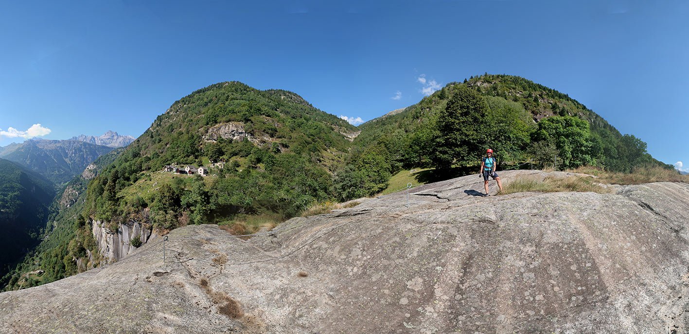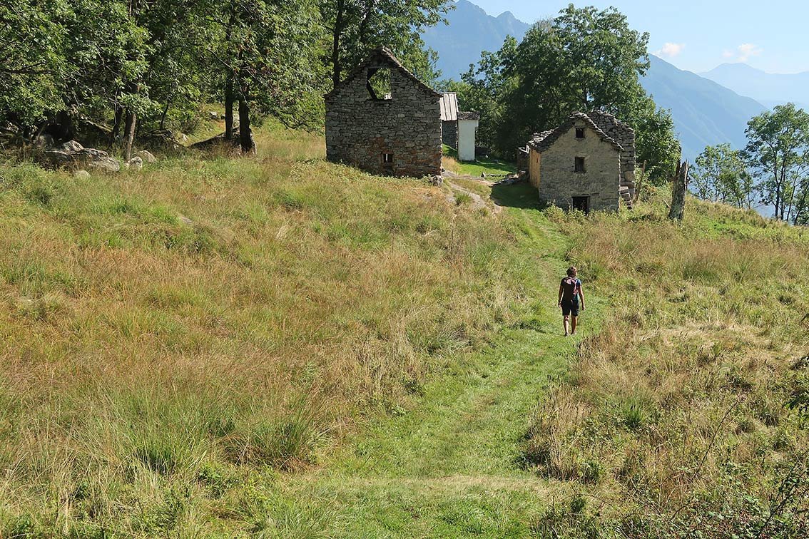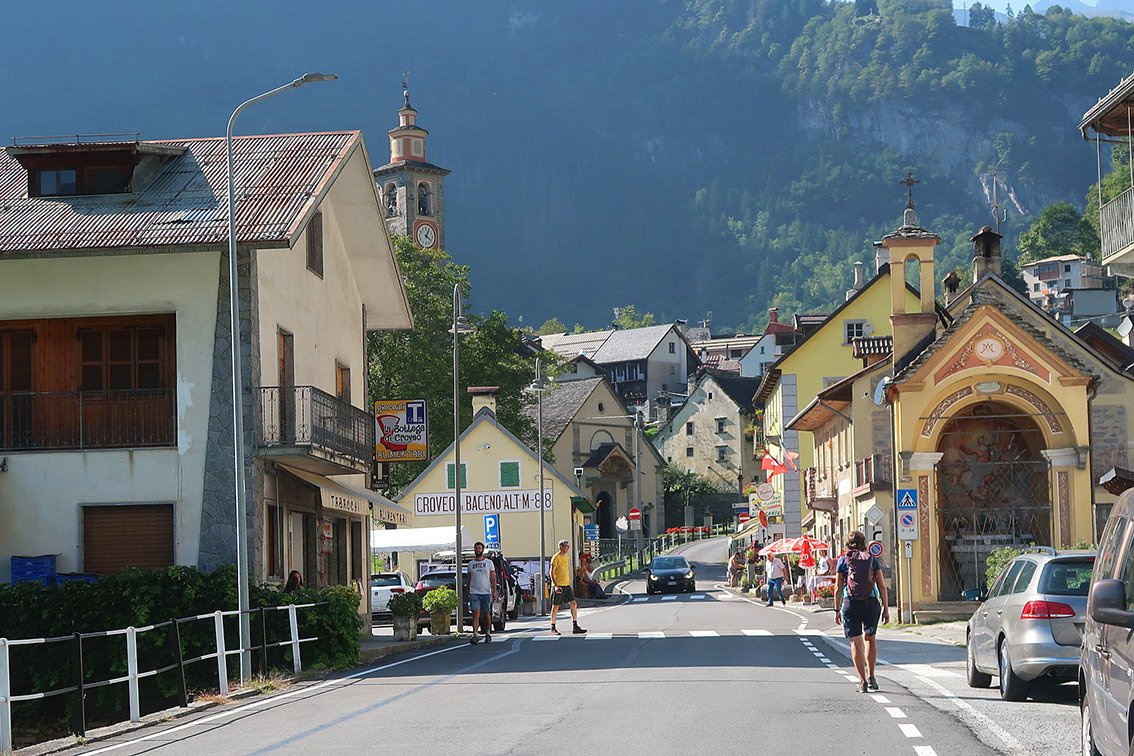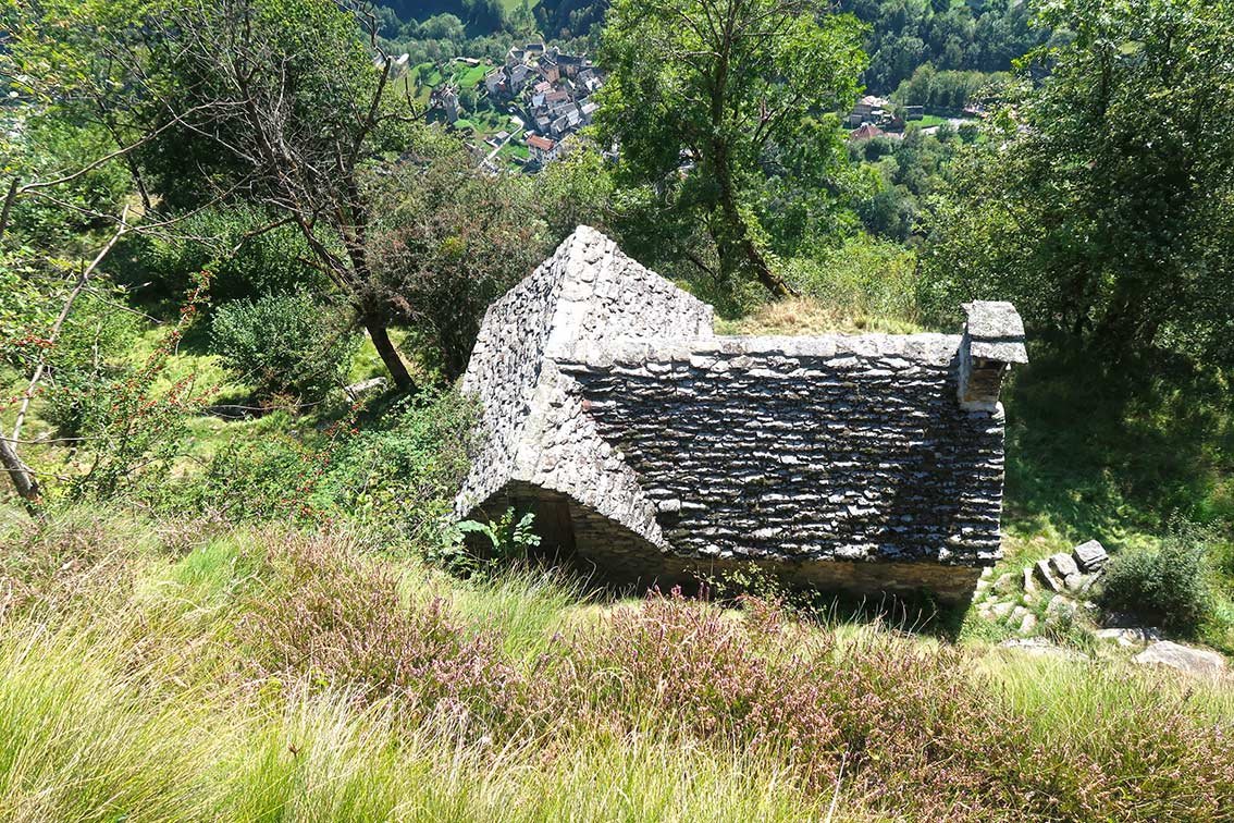 Vom Ausstieg kurz aufwärts, bis man auf den Wanderweg H06 trifft. Auf diesem südöstlich hinunter, vorbei an vielen alten Steinhäusern. Der Weg teilt sich, man bleibt aber am besten auf dem H06 und gelangt so nach Croveo und geht am Ende mitten durch den Ort (diverse Lokale laden zum Verweilen ein) zurück nach Osso.