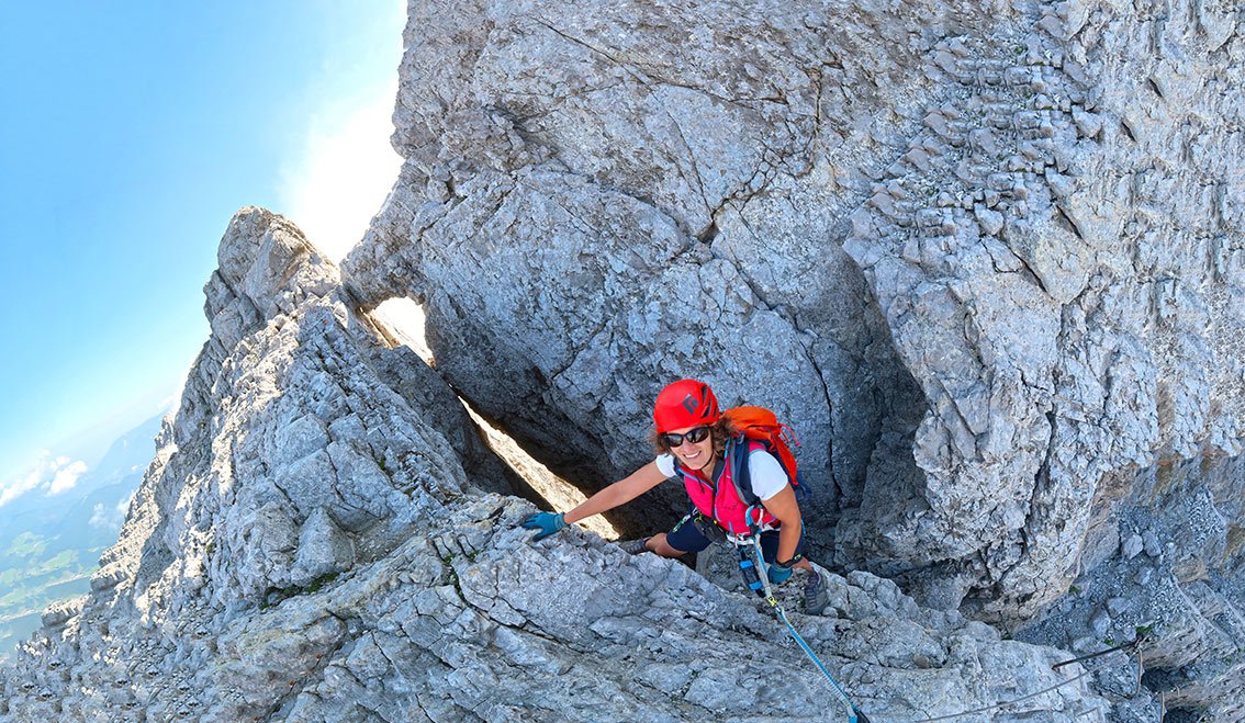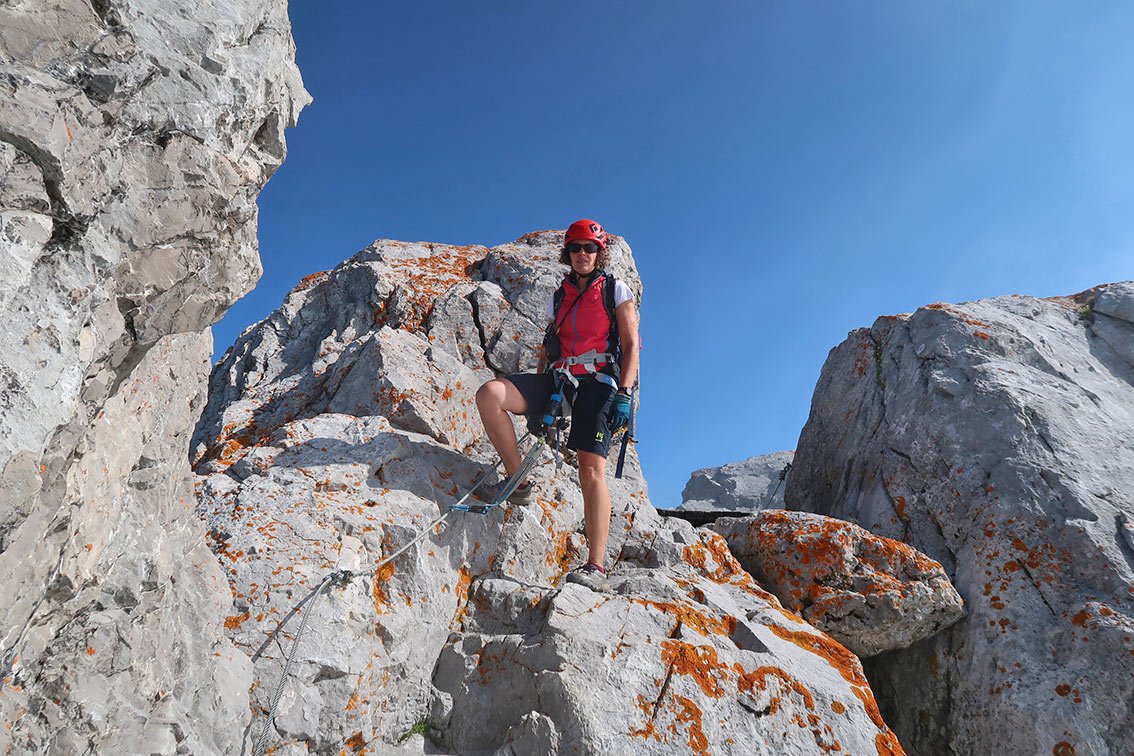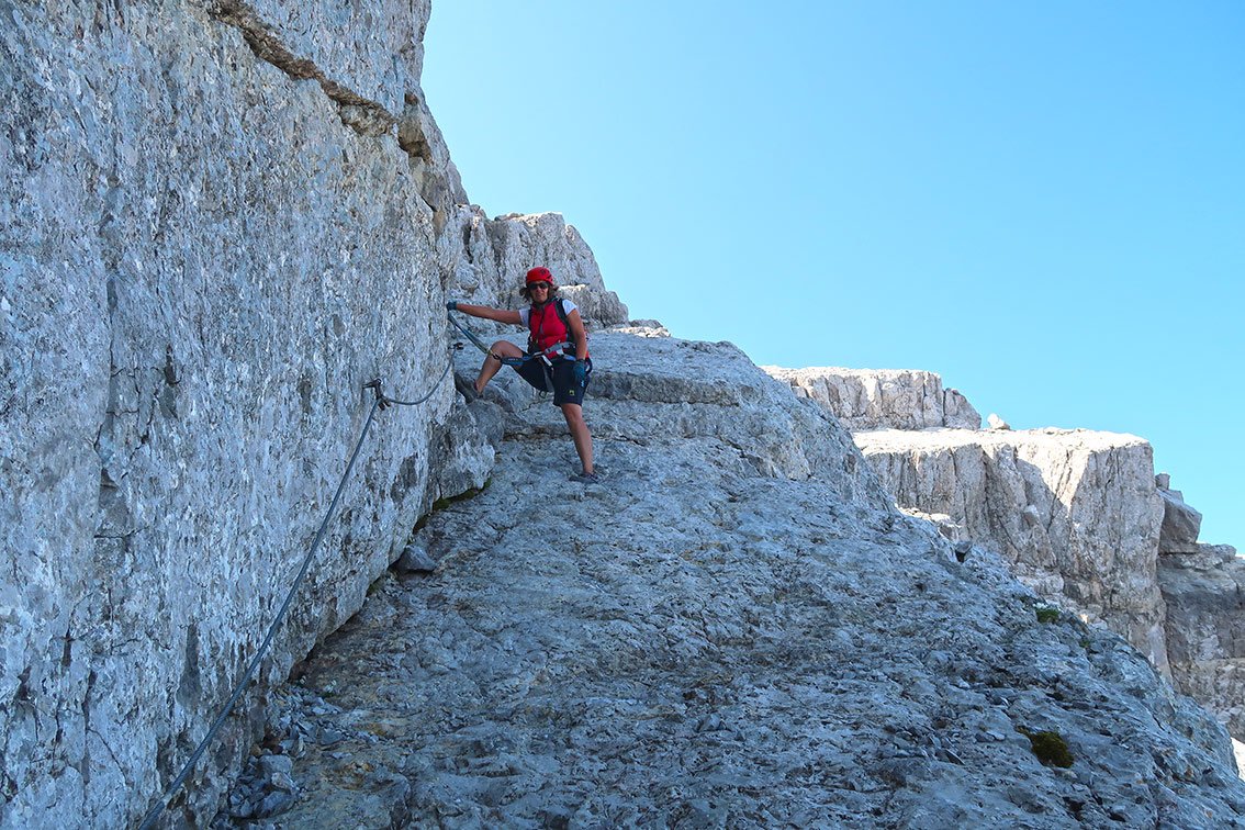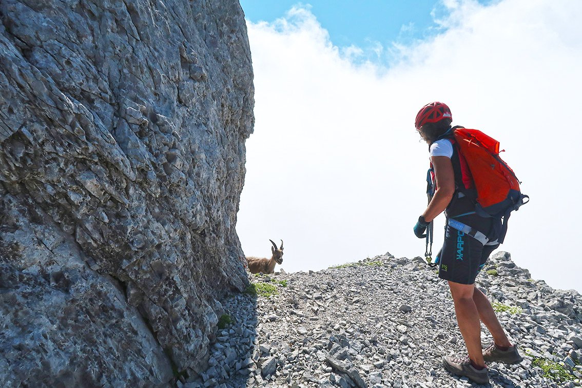 Nur bei bestem Wetter und schnee-/eisfreiem Fels unternehmen! Trittsicherheit, Schwindelfreiheit und etwas Klettergewandtheit sind notwendig. Längere Strecken Schwierigkeitsgrad l-, ansonsten Sicherungen.