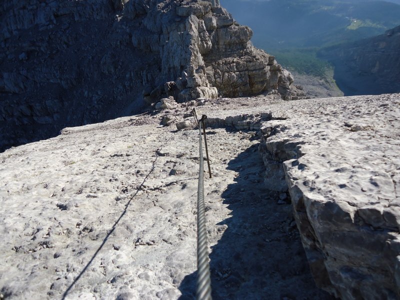 Die Überschreitung ist nicht durchgehend mit Drahtseilen abgesichert (!) - tlw. noch altes Material (das aber nicht stört).