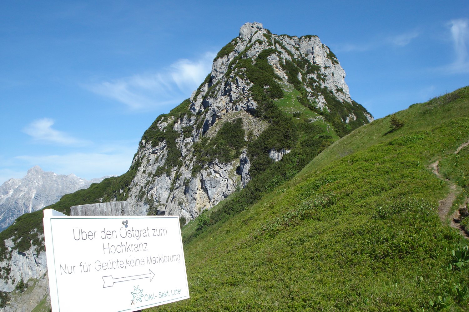 Konditionskanonen können noch auf den Hochkranz steigen - der Normalweg ist versichert (Stellen B; ca. 1100 Hm/2,5 Std. ab dem Ausstieg). Den kurzen Steig kann man gut im „Vorbeifahren“ mitnehmen, da man in Weißbach so oder so das Tempo etwas reduzieren sollte - dort steht nämlich die einträglichste Radarbox des Bundeslandes Salzburg. Den Steig kann man auch gut mit einem Besuch in der Lamprechtshöhle (schöne Schauhöhle) oder mit der direkt im Ort beginnenden Seisenbergklamm verbinden. Als anschließende Bergtour bietet sich der Hochkranz an (kurze Stellen bis B), PKW-Auffahrt bis Pürzelbach möglich, danach zu Fuß über die Kallbrunnalm zum Gipfel.