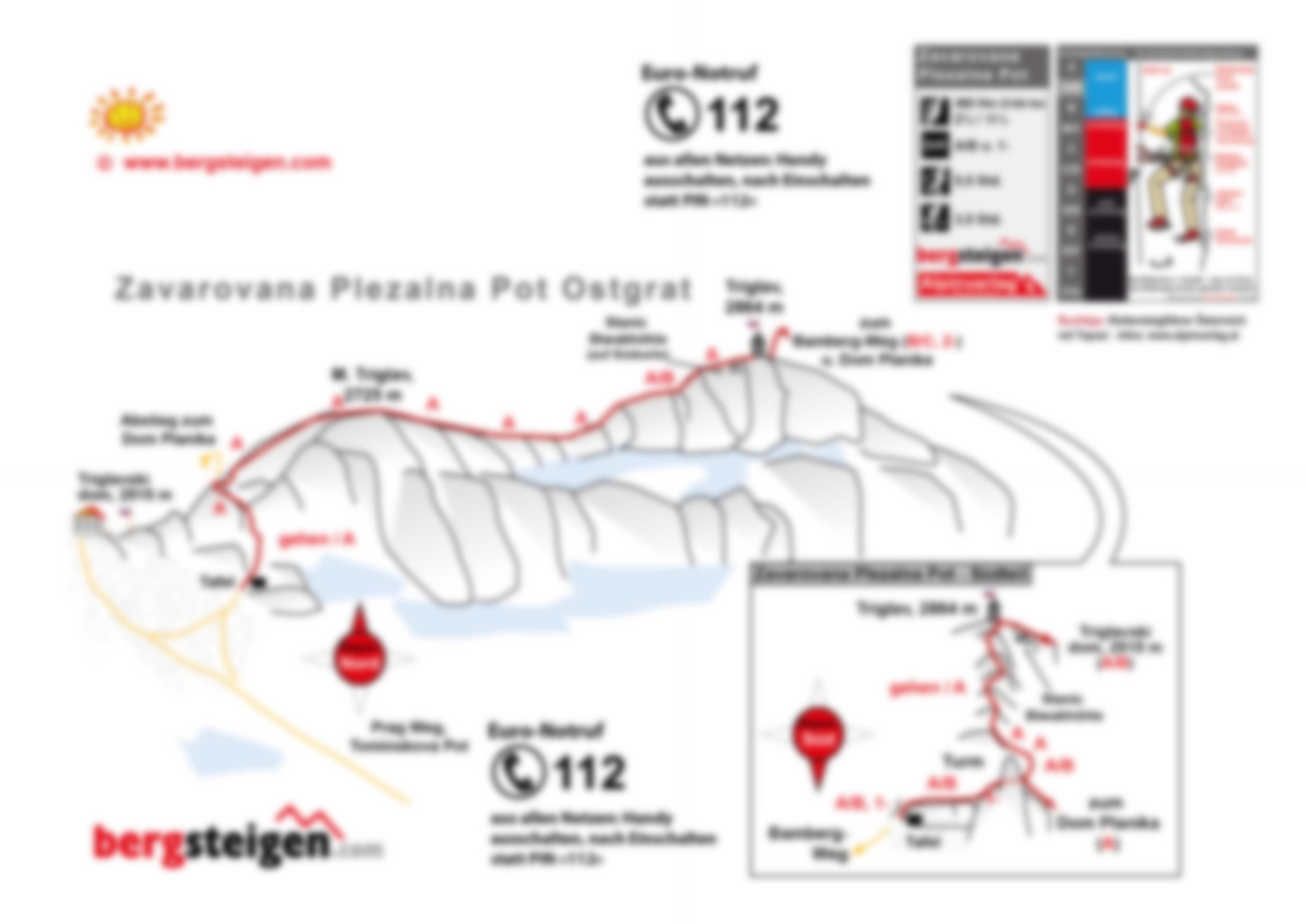 Der insgesamt 1,8 km lange Gipfelklettersteig Zavarovana Plezalna Pot führt in anregender, problemloser Linienführung von zwei Seiten auf den Gipfel des Triglavs, den höchsten Berg Sloweniens. Über weite Strecken folgt der Klettersteig direkt dem Ostgrat. Da fast jeder slowenische Bergsteiger zumindest einmal in seinem Leben auf dem Triglav gewesen sein möchte, ist vor allem der Ostteil des Klettersteiges an schönen Tagen völlig überlaufen. Im Gegensatz zum Westteil ist der Ostteil jedoch üppig versichert, was dem Triglav den Spitznamen „Stachelschwein“ eingebracht hat.