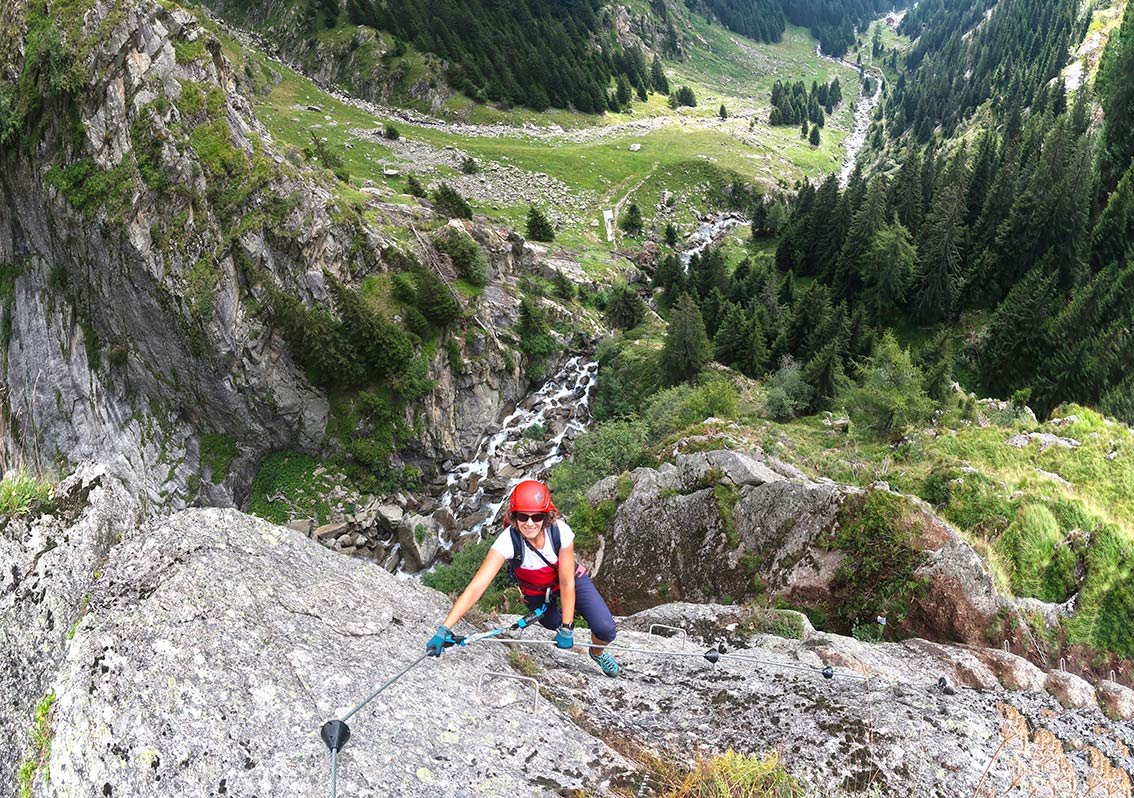 Der Ziel Klettersteig liegt im gleichnamigen Tal am Rande des Naturparks Texelgruppe. Es wurde eine eindrucksvolle, ohne viel Tritthilfen und sanft in die Landschaft integrierte Ferrata geschaffen, welche im unteren bzw. mittleren Schwierigkeitsbereich angesiedelt ist. Mit dem Zustieg von der Bergstation der Texelbahn taucht man via Meraner Höhenweg in die wunderbare Naturlandschaft ein. Der Klettersteig ist quasi das Tüpfelchen auf dem i, bei dem man zwischen Ziegen und pfeifenden Murmeltieren hinauf zum sog. Gingglegg klettert. Der wirklich gelungene Klettersteig hat das Zeug zum Klassiker und wird schnell bei vielen Klettersteiggehern auf der „to do list“ stehen.