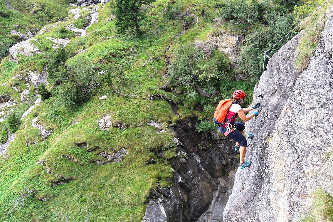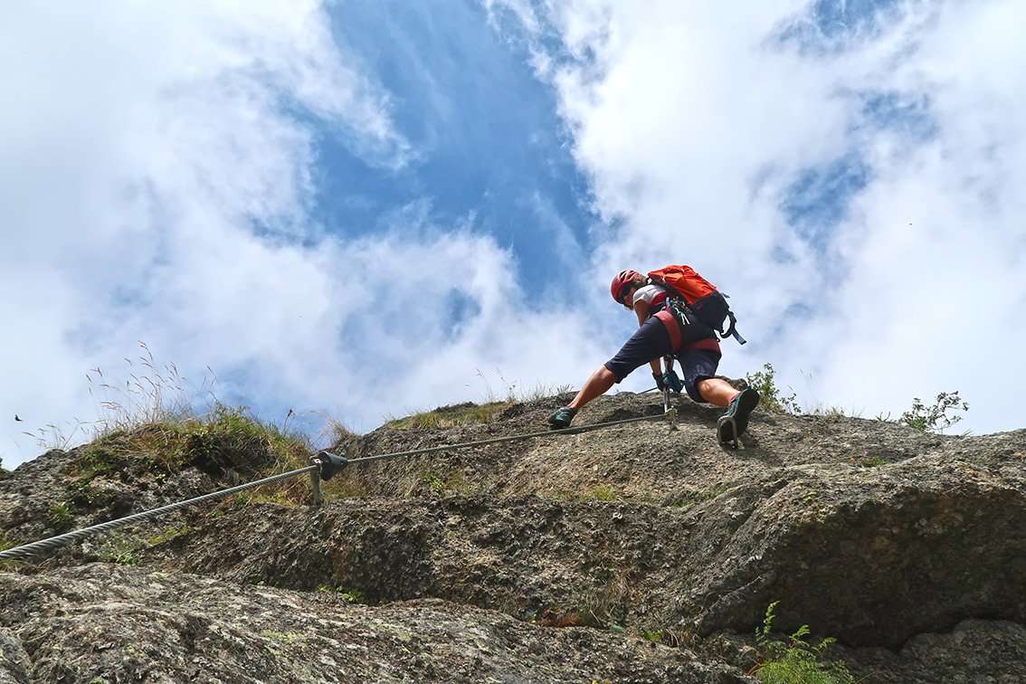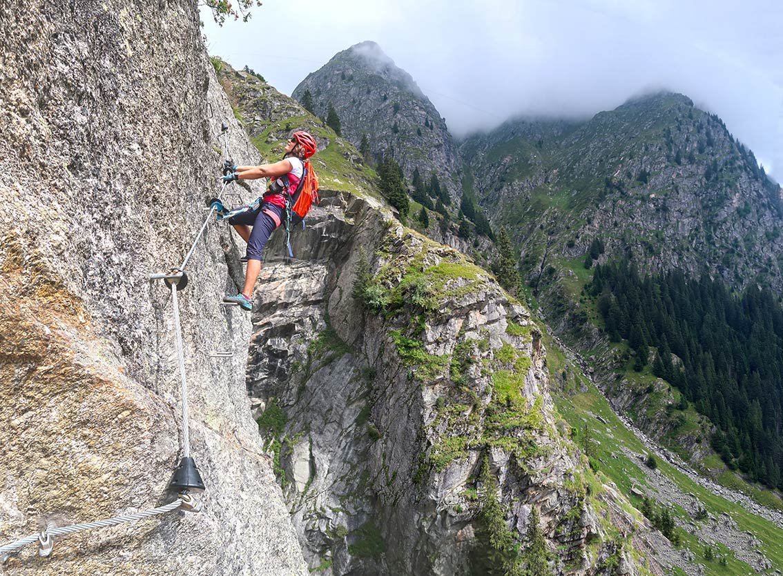 Bei Nässe ist der Klettersteig wegen der vielen Platten evtl. etwas unangenehm.