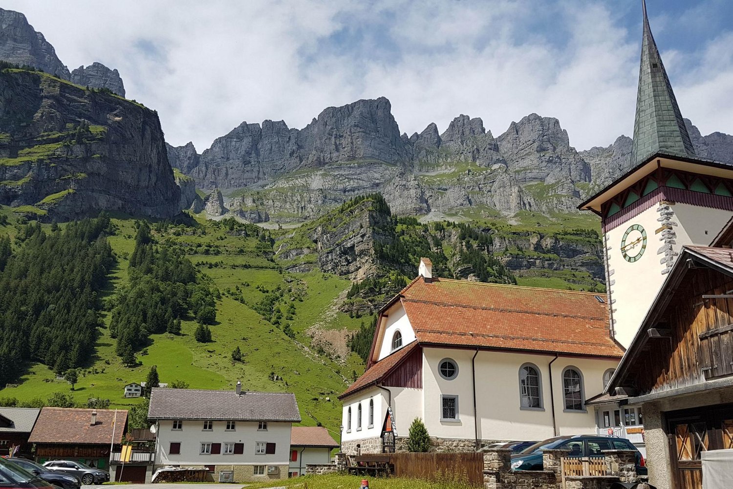 Von der Kirche zurück zur Hauptstraße. Rechts vom Hotel Wilhelm Tell beginnt ein anfangs nur schwer sichtbarer Pfad durch die Wiese. Nach wenigen Minuten zweigt der Zustieg zum Klettersteig rechts zum Wald ab. Durch den Wald hinauf zum Einstieg.