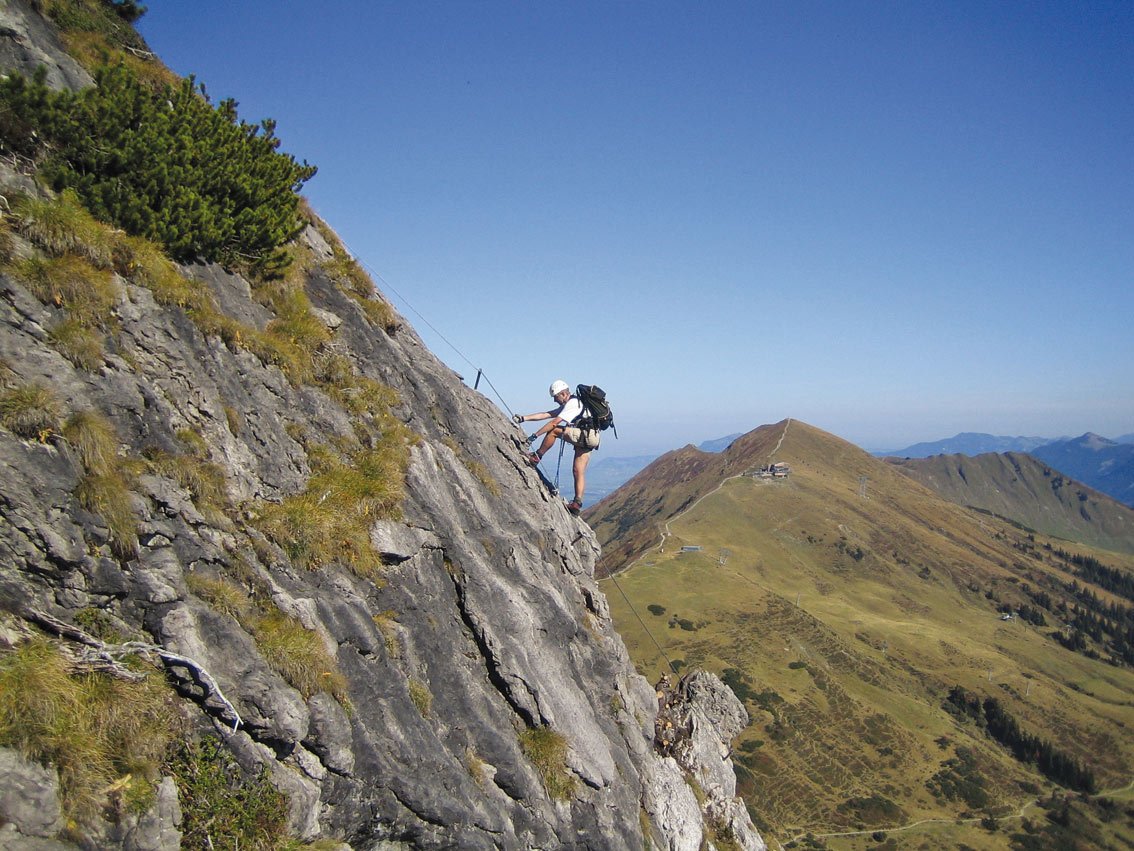 Nordseitige Ausrichtung beachten - der Schnee hält sich länger und nach Regentagen ist es oft feucht (unangenehm zu klettern). Tipp für den Abstieg: Kanzelwand-Erlebnis-Klettersteig mit einer 26 m langen Burmabridge (50 Hm; B/C; beginnt am Kanzelwand-Normalweg).