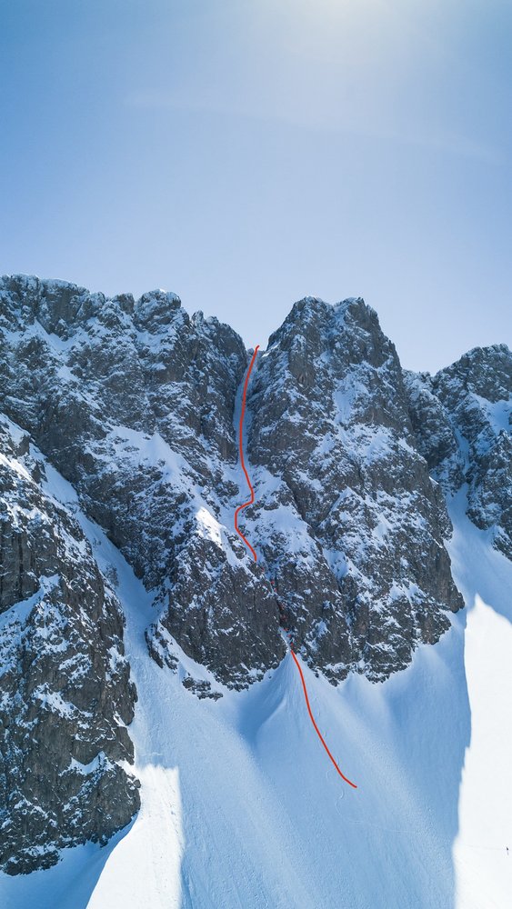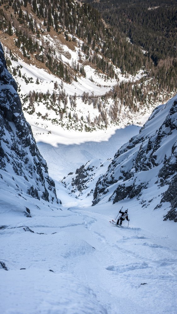 Sehr anspruchsvolle, extrem steile Rinne von den Handschuhspitzen ins s'Bergle runter. Komplettiert (04/2025) das Quartett aus Y-Couloir, Haselehn-Rinne und Direkter Nordrinne.