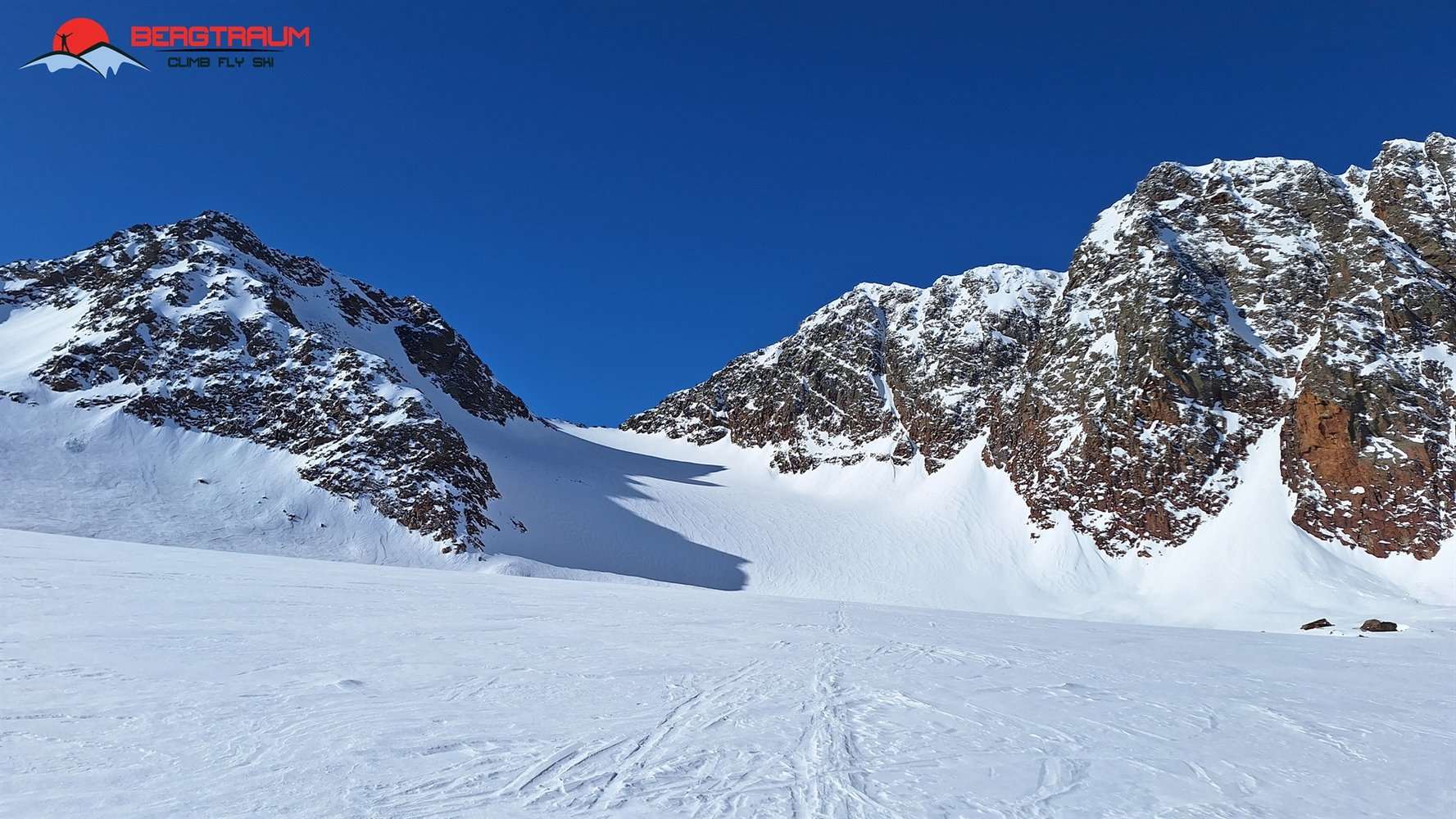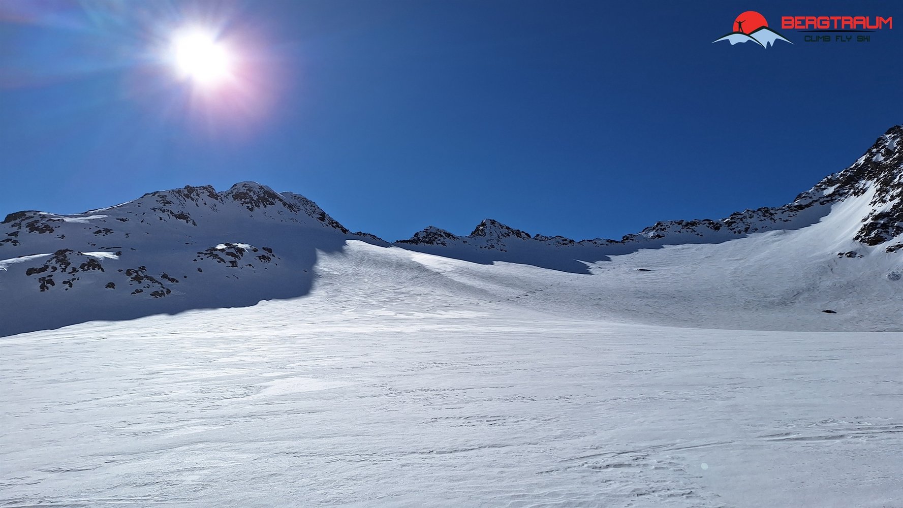 Abfahrt: Im Wesentlichen wie der Aufstieg. Herrliche Hänge unterhalb der Rocholspitze und der Agglsspitze. Das weitläufige Gelände ab dem unteren Gletscherende lässt viele schöne Varianten zu.