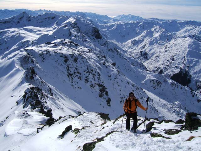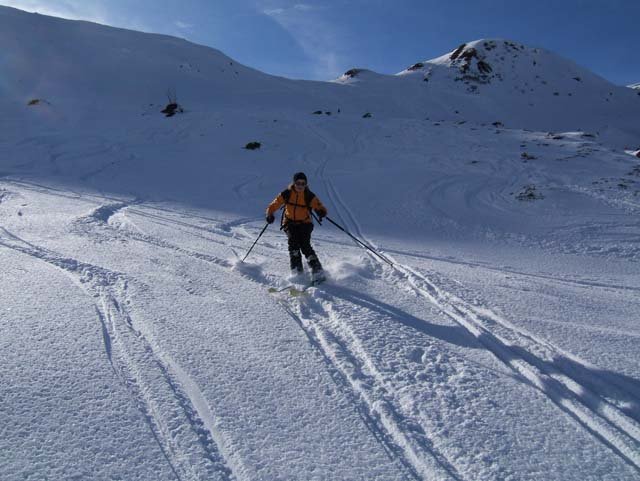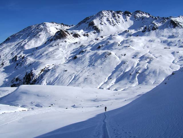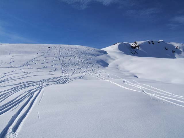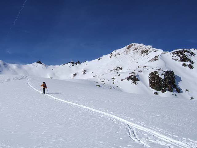 Das Tourengebiet um die Neue Bamberge Hütte ist weithin bekannt und dementsprechend gut besucht. Neben den Paradegipfel wie Schafsiedel und Tristkopf gibt aus auch ruhigere Ziele wie die hier beschrieben Aleitenspitze. Während der ganzen Tour besteht nur sehr geringe Lawinengefahr, nur der Gipfelhang ist steil und muß dementsprechend beurteilt werden.