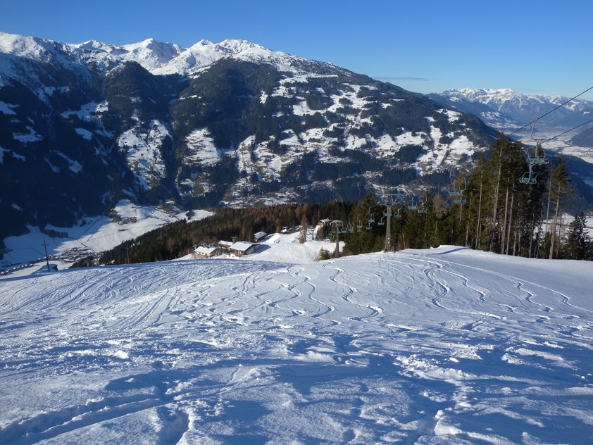 Durchaus beliebte Pistenskitour von Hainzenberg hinauf zum Arbiskögerl. Das nicht so stark frequentierte Skigebiet Gerlosstein verfügt über keine Beschneiungsanlage, trotzdem findet man wegen der nordseitigen Lage oft schon zum Saisonstart gute Verhältnisse.