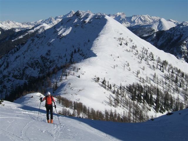 Durch den flachen Anmarsch bis zur Prechtlhütte ist die Route nur bedingt für Snowboarder geeignet. Ab der Alm aber problemlos.