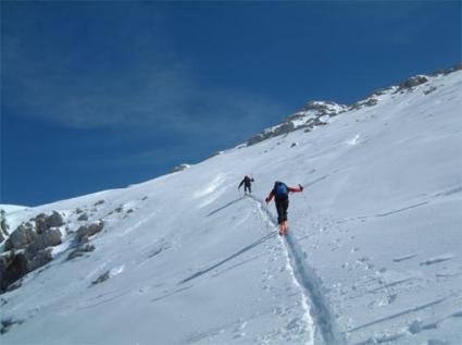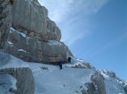 Die Tour stellt hohe Anforderungen an die Kondition. Oben leichte Kletterei zum Gipfel (mit Eisenklammern, die sind aber meist unter dem Schnee).