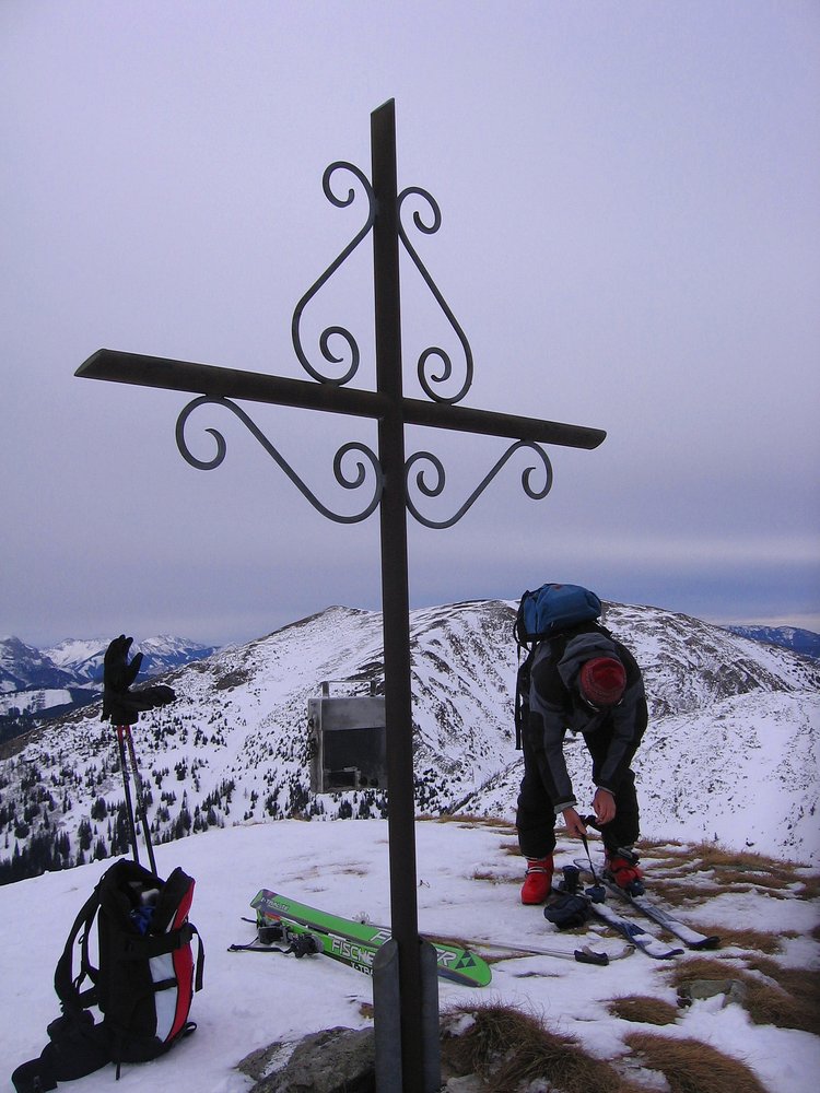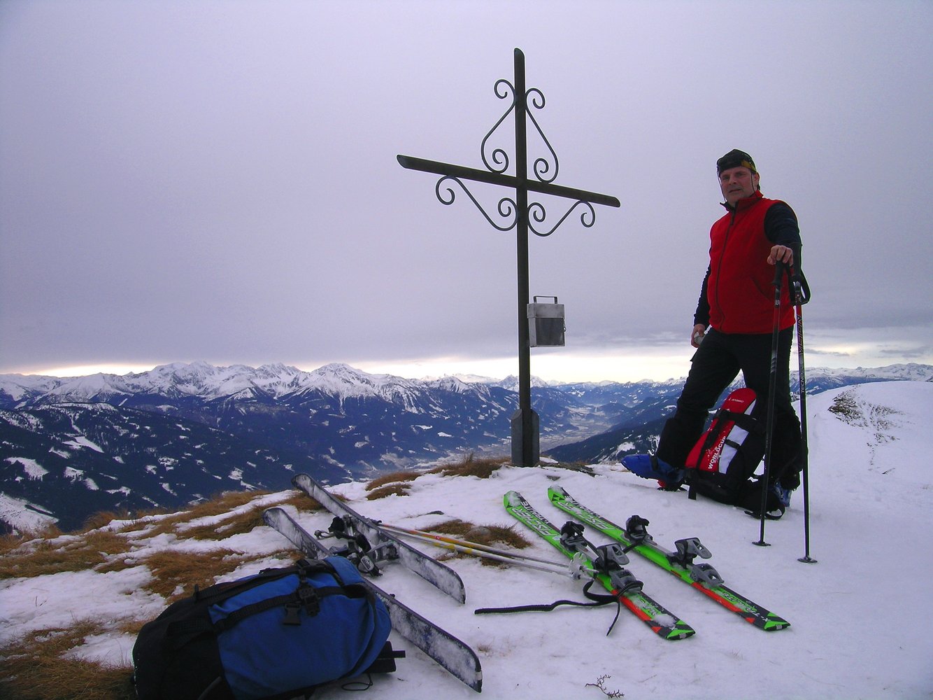 Man überquert den Bach beim Gscheidegger Hof und folgt der linken Forststraße bis zu den ersten Hütten am Waldrand. Hinter der Hütte zweigt rechts ein kleiner Weg in den Wald ab. Man folgt ihm und trifft bald wieder auf die Forststraße, die dann zur Breitenbergeralm am Fuße des Ploden(graben) führt. Man hält sich rechts um dann am Ende der Almwiese wieder gerade bzw. leicht linkshaltend steil auf einen Absatz (Almboden) zu gelangen. Von hier geht es nun in westlicher Richtung zum Gipfelhang, den man an seinem südlichen od. linken Grat zum Gipfel folgt. Abfahren kann man entweder wieder über die Ploden oder weiter westlich über die Nordhänge des Bärenkars, das man am Ende wieder orographisch rechts zur Breitenbergeralm ausquert.