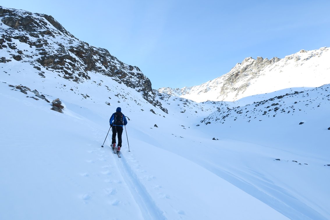 Sichere Schneeverhältnisse sind nötig (Steilstufe beim Grastalsee).