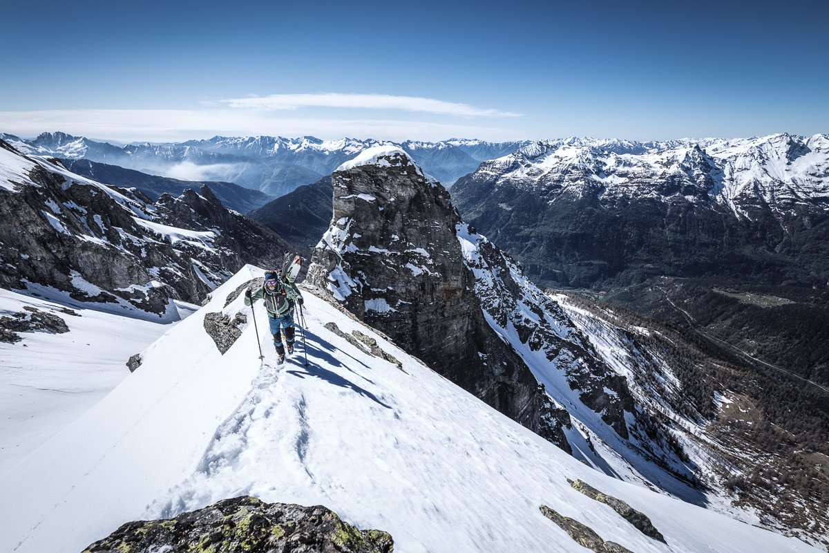 Vom Bahnhof in Domodossolas halten wir uns zunächst mit dem Bike in Richtung Simplon Pass bzw. SS33 und folgen diesen bis zum Dorfzentrum von Varzo. Dort fahren wir zunächst 3 km weiter auf der Straße nach San Domenico bis wir die kleine Ortschaft Maulone erreichen. Eine kleine schmale und steile Straße führt uns zur Hütte Alpe Solcio. Diese bietet sich auch gut als Übernachtungsmöglichkeit an, wenn man die Tour auf zwei Tage aufteilen oder die Gegend an weiteren Tagen erkunden möchte. Nach dem Wechsel von Bike auf Ski steigen wir entlang des Solcio Couloirs bis zum Grat auf und gehen die letzten Meter zu Fuß zum Gipfel.