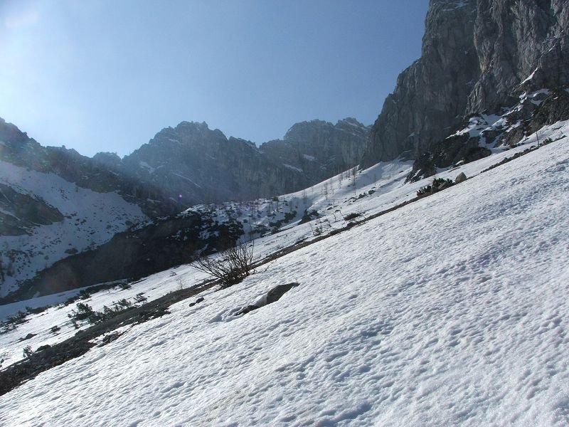 Zu beachten ist, dass im Hochwinter die Straße in Vrata- Tal nicht geräumt wird. Daher muss man entweder bis ins Frühjahr warten, bis man weit ins Tal hineinfahren kann, oder aber man geht von weiter draußen los (meistens ab dem „Pericnik“- Wasserfall. Dann muss man 4 Kilometer an Distanz hinzurechnen!)