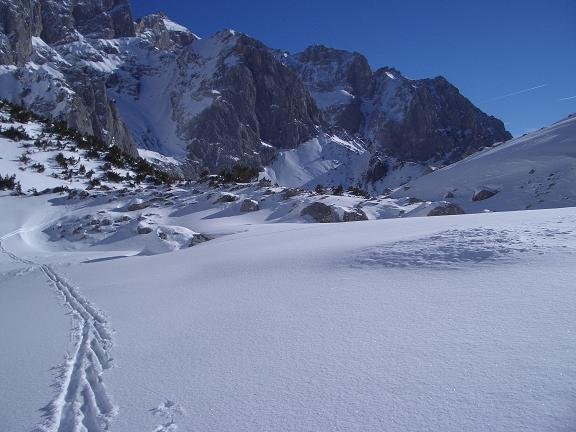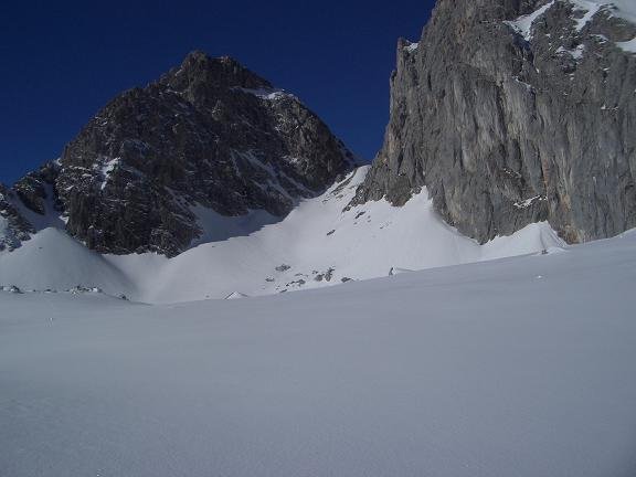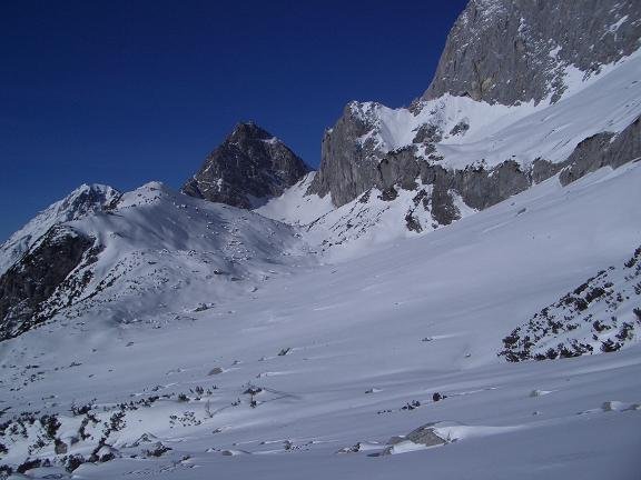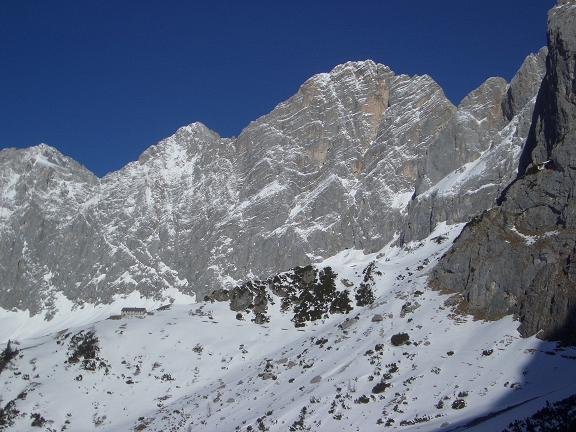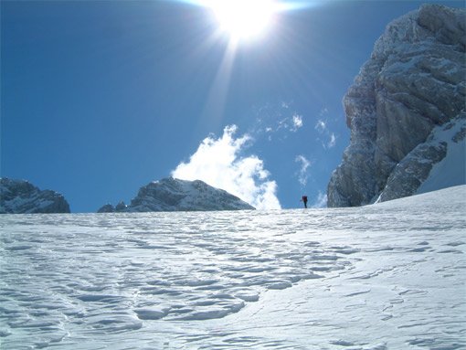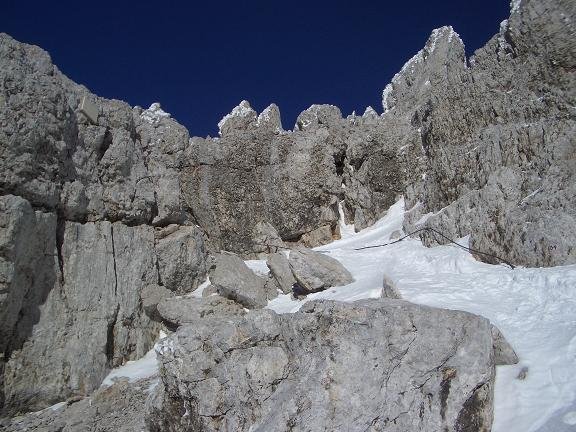 Nur bei sehr sicheren Schneeverhältnissen machen!! Wenn die Seilversicherungen unter dem Schnee vergraben sind ist der Gipfelaufstieg heikel!