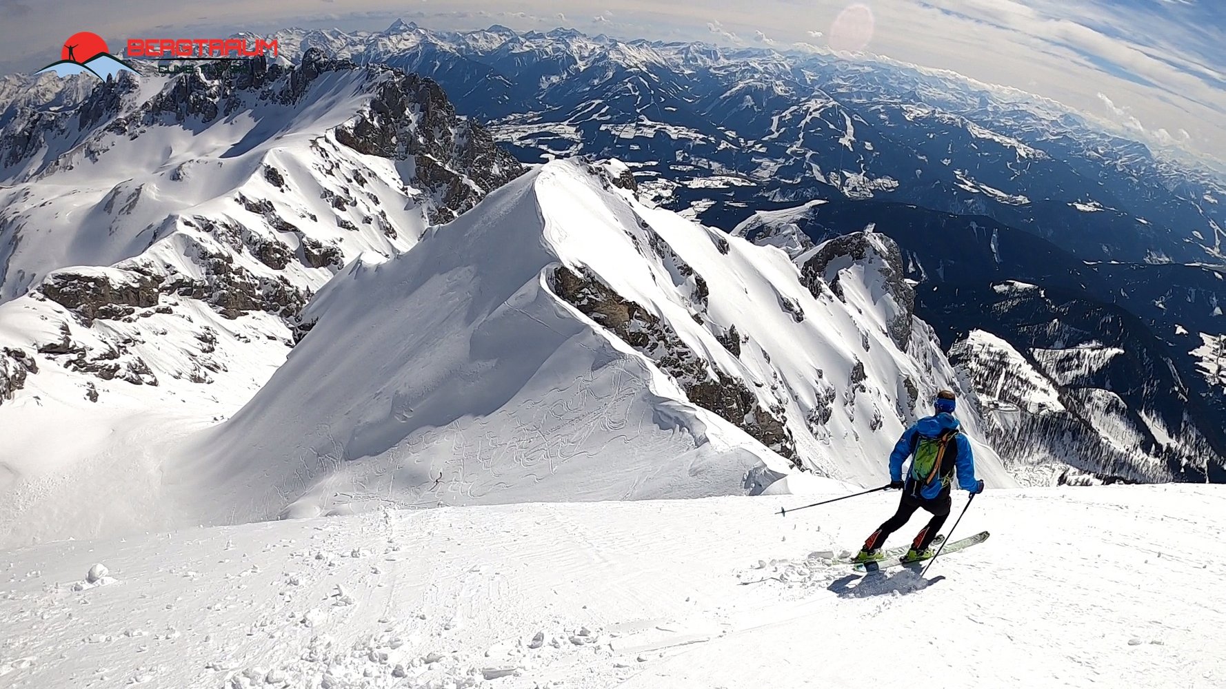 Die Tour hat- inkl. der Gipfelüberschreitung 2.200 HM und knapp 22 km. Wenn man nach dem Windlegerkar bis auf Kote 1.900 m abfährt ( das ist bei guten Schneeverhältnissen das Optimale). Und wenn man beim retourgehen ÜBER die Austria Scharte geht.