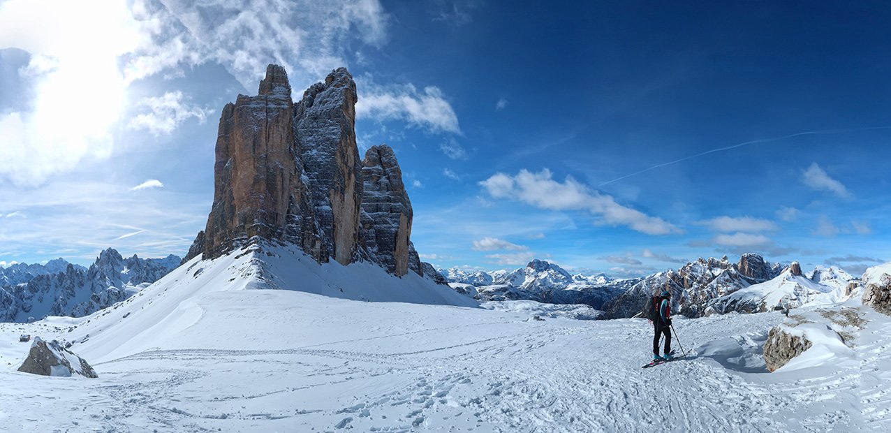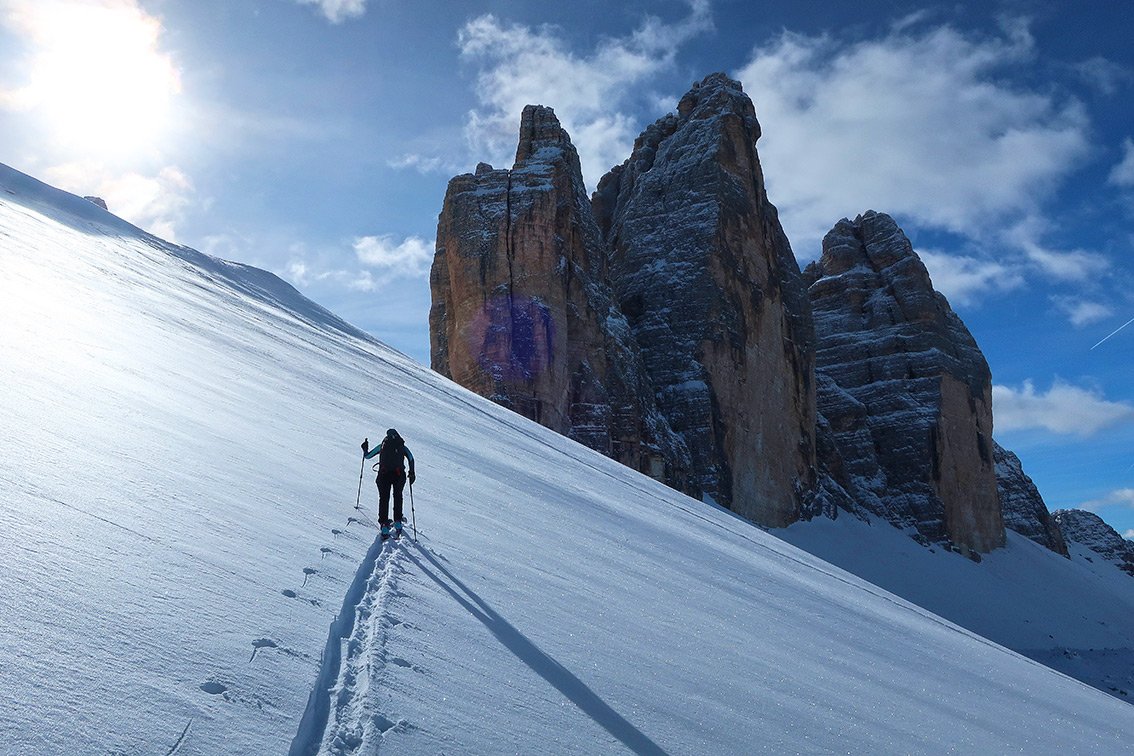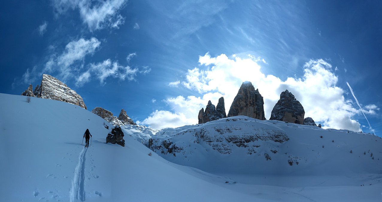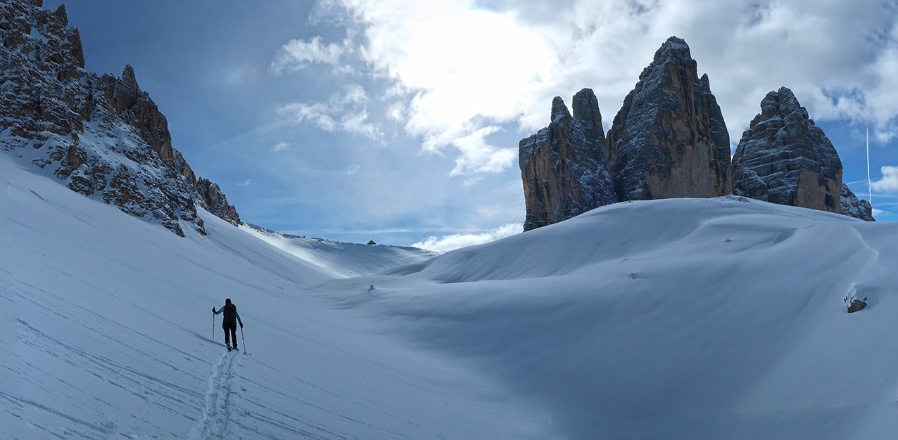 Die Umrundung der Drei Zinnen ist ein Klassiker, in der hier beschriebenen Variante auch ein tolles Skitourenabenteuer. Es gibt zwei steile Schlüsselstellen der Umrundung, das ist der Aufstieg aus dem und die finale Abfahrt in das Rienztal. Oben auf dem Plateau an der Zinnen Nordseite oder auf dem meist gut trassierten Weg an der Zinnen Südseite gibt es Bilderbuchlandschaft pur zu genießen. Die Drei Zinnen Skitouren Umrundung aus dem Rienztal ist ein Dolomiten Skitourenklassiker, bei dem man die raue aber perfekt schöne Drei Zinnen Landschaft bis aufs i-Tüpfelchen ausreizt. Der geheime Skitourengehertraum - eine Skitour im Nahbereich der berühmten Drei Zinnen - geht mit dieser Tour auf spektakuläre Weise in Erfüllung.