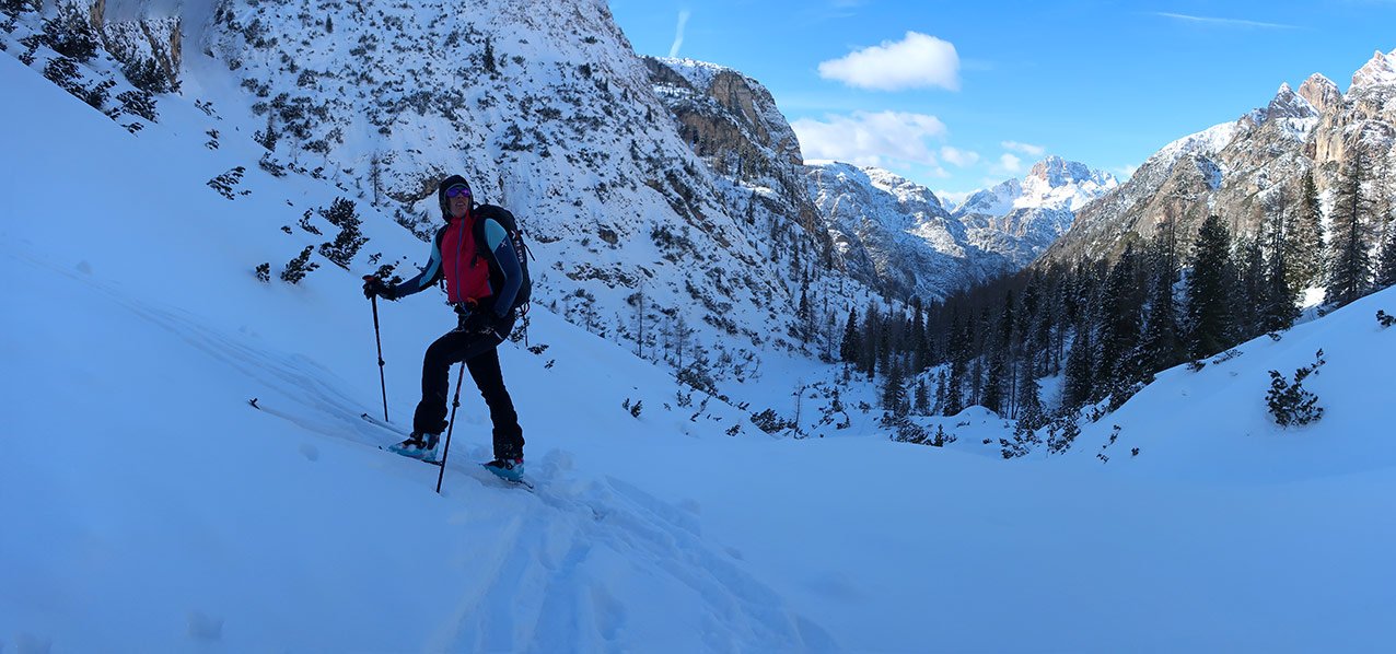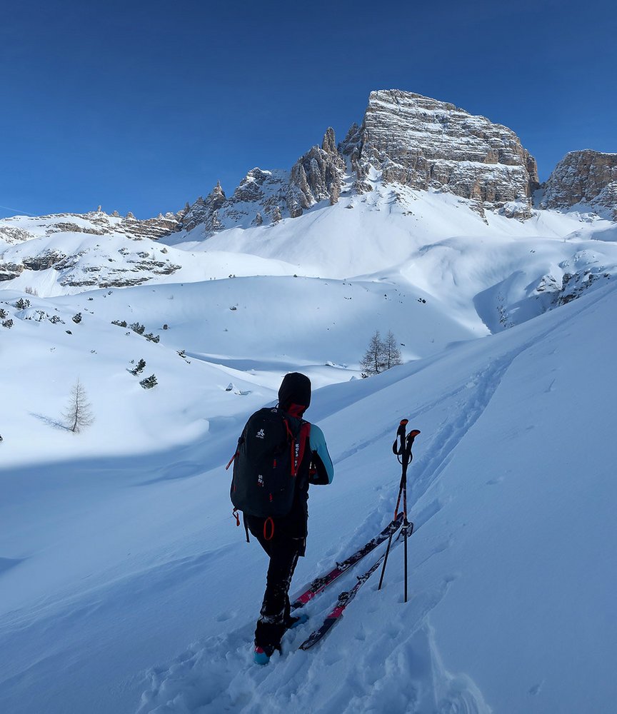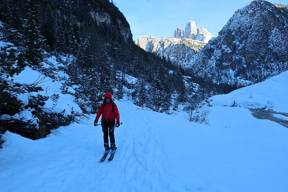Die Drei Zinnen Rundtour ist von den Höhenmetern nicht sehr fordernd, wenn man aber spuren und suchen muss, wird sowohl der Aufstieg unterhalb der Drei Zinnen Hütte, als auch die Abfahrt zurück ins Rienztal zum Abenteuer - die Tour zieht sich dann naturgemäß etwas in die Länge.