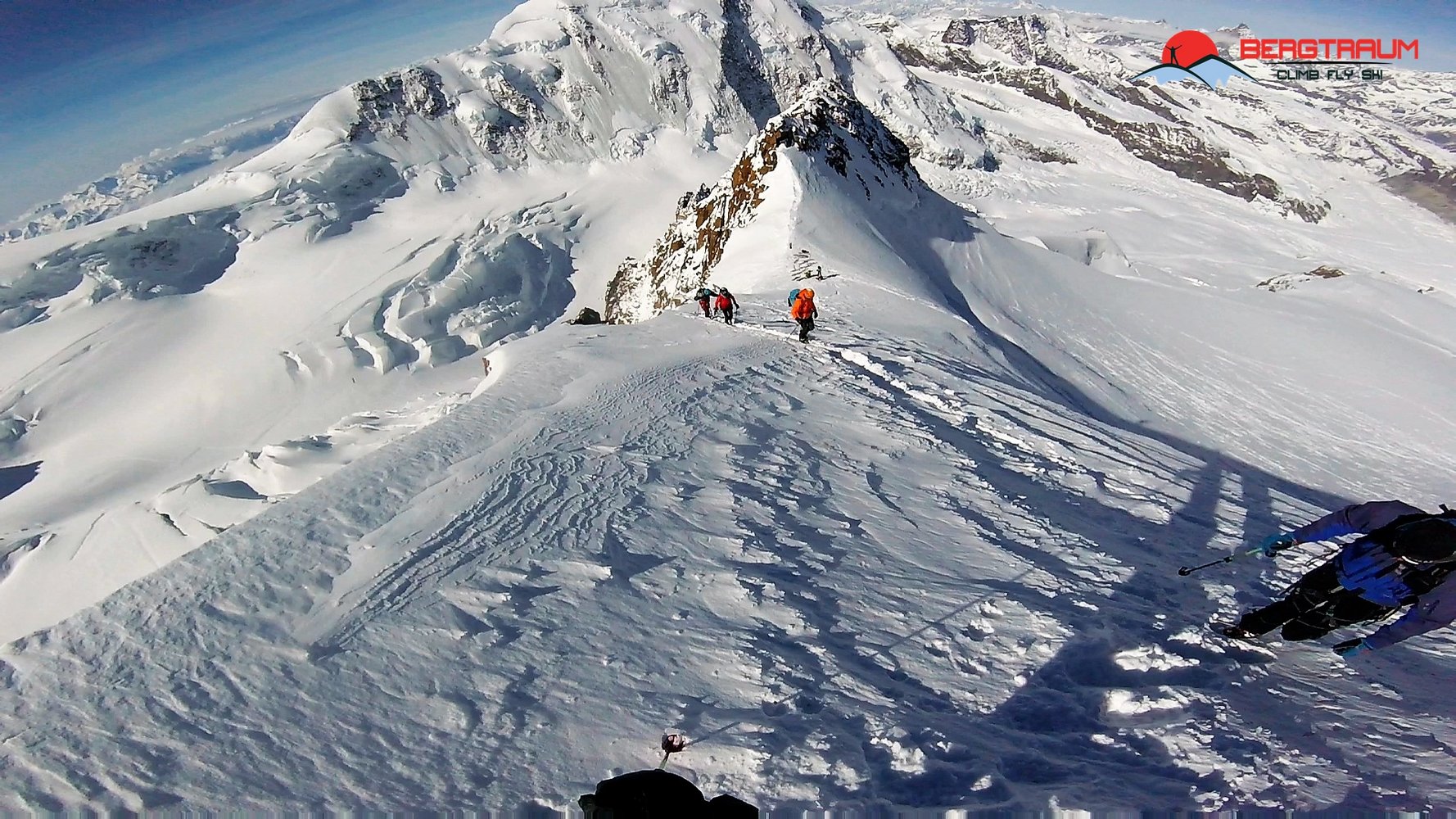Ein Klassiker, der immer gut gespurt ist. Nicht zu unterschätzen ist die Höhe und Länge der Tour. Auch ist der Westgrat stark windexponiert und daher bei entsprechender Kälte ein Härtetest für den Körper. Nicht wundern ob der vielen Heliflüge- gehfaule Variantenfahrer werden von Zermatt auf die Kote 4.200 m raufgeflogen. Ein sehr ausgesetzter Westgrat und Spalten am Gletscher fordern Hochtourenerfahrung.