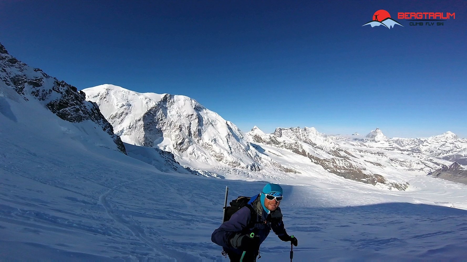 Relativ lange Schitour auf den höchsten Punkt der Schweiz (4.634 m). Die Variante über den Silbersattel ist sehr spaltenreich bzw. existieren die Fixseile im Nordcouloir nicht mehr. Die Variante über den Westgrat verlangt Schwindelfreiheit und solides Gehen im steileren Eis bzw. Schnee. Leichte Kletterpassagen am Grat selbst (SG 3).