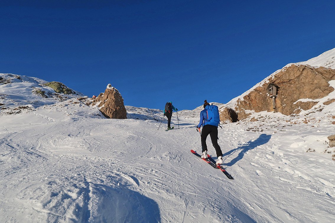 Abfahrt wie Aufstieg - oben sind viele Varianten möglich.
