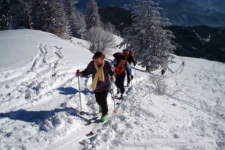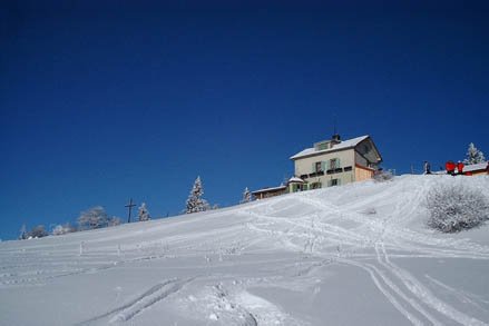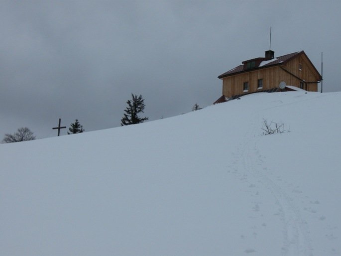 Leichte Skitour mit schönem Gipfelhang und gemütlicher Hütte am höchsten Punkt.