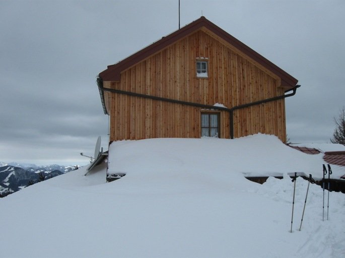 Aufstieg: Vom Knedlhof oder (weiter hinten) beim Ortbauer entlang des markierten Weges unter dem Gipfelhang, dem man zur Julius Seitner Hütte folgt.
