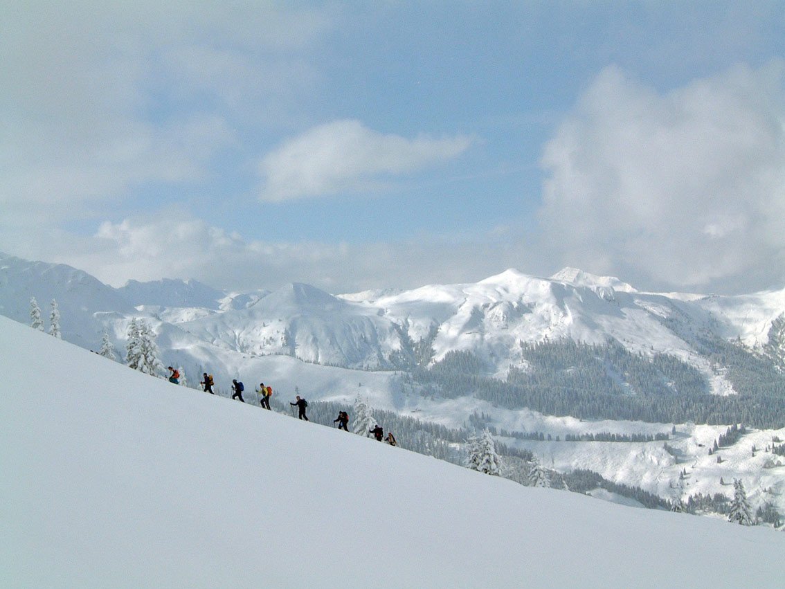 Es sind relativ lawinensichere Hänge, nur vom Gipfel sollte bei kritischen Lawinenverhältnissen nicht direkt abgefahren werden. Bei der netten Abfahrt an zahlreiche Almhütten (nicht bewirtschaftet) vorbei, genießt man einen schönen Ausblick auf die anderen Skiberge (Großer Beil, Lämpersberg und Schatzberg) der Region. Leider, und das ist die Kehrseite vom Vergnügen, muss man früh aufstehen um alleine auf dem Gipfel zu stehen (und einen Parkplatz zu bekommen...).