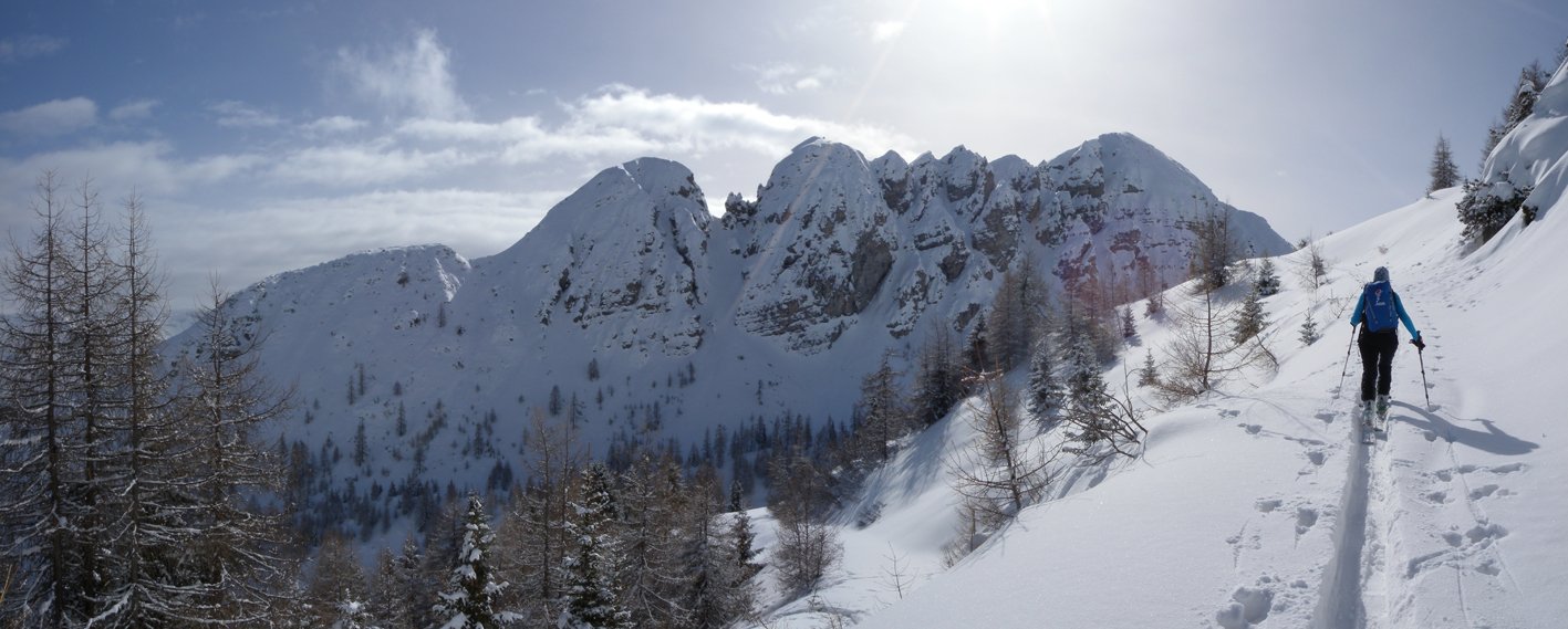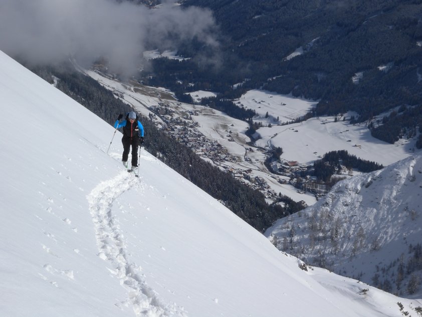 Der Mittelteil des Zufahrtsweges zum Padasterjochhaus führt durch sehr steiles Gelände - oft ist die Straße mit Schnee komplett überdeckt! Auch der Gipfelhang des Foppmandls ist steil! Sichere Schneeverhältnisse sind für diese Tour nötig!