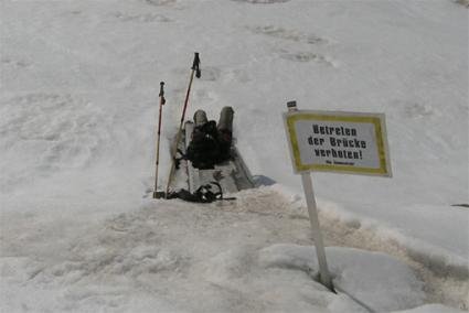 Vom Gasthof Finkau dem Weg in Richtung Zittauerhütte folgen - es führt eine Fahrstraße bis zum Materialaufzug. Beim Materialaufzug gerade (bzw. ganz leicht rechts) über die Steilstufe (Vorsicht oft Blankeisstellen) und dann wieder nach links in Richtung Zittauerhütte, um die markante Moräne herum bis man links neben der Moräne in einen Graben kommt. Diesen direkt aufsteigen und oben leicht linkshaltend bis zu den Felsen und diesen entlang bis zu einer Art Scharte. Nun - meist in Felsennähe - über das letzte Steilstück (die sog. Glatze - kann bei wenig Schnee bzw. hartem Harsch heikel sein) bis zum Beginn des Felsgrates, hier Skidepot. Nun Anfangs meist rechts vom Grat aufwärts, am Ende kommt ein sehr ausgesetztes Gratstück kurz vor dem höchsten Punkt (Felsgrat II - kann bei Vereisung heikel sein! Viele Gablergeher gehen nur bis zum Skidepot).